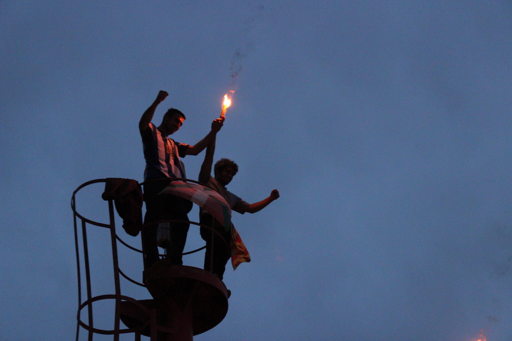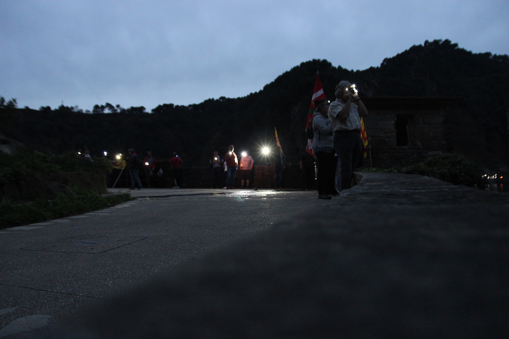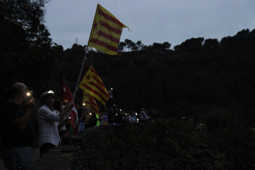 Argi elektrikoez gain, zuziak erabili zituzten bokalea argitzeko. Ordu gutxi batzuk izan bazituzten ere dena antolatzeko, erantzun bikaina izan zuen atzoko elkartasun ekintzak. Ehunka argi izpik bokaleko bi bazterrak argitu zituzten, Kataluniako herriari, beste behin, babesa adierazteko eta erabakitzeko eskubidearen defentsa egiteko.