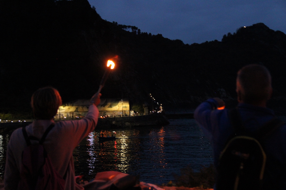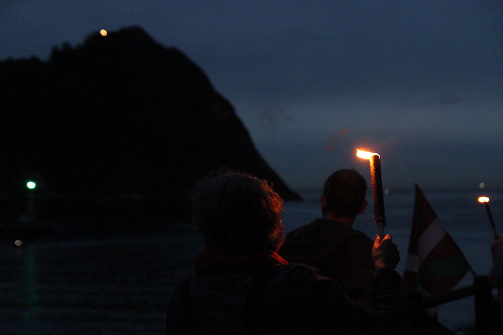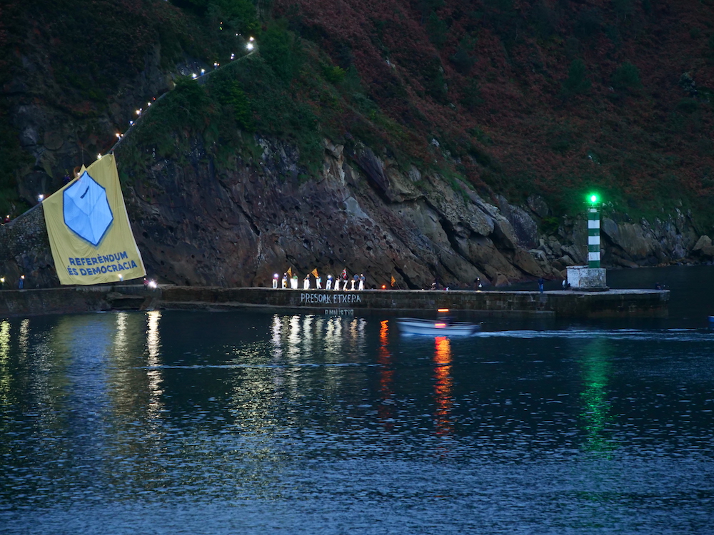 Ekintza sinboliko bezain deigarria egin zuten bart ehunka herritarrek Pasaiako badiaren bokalean. Bi bazterrak argitu zituzten, demokraziaren alde eta Kataluniar herriari babesa emateko.