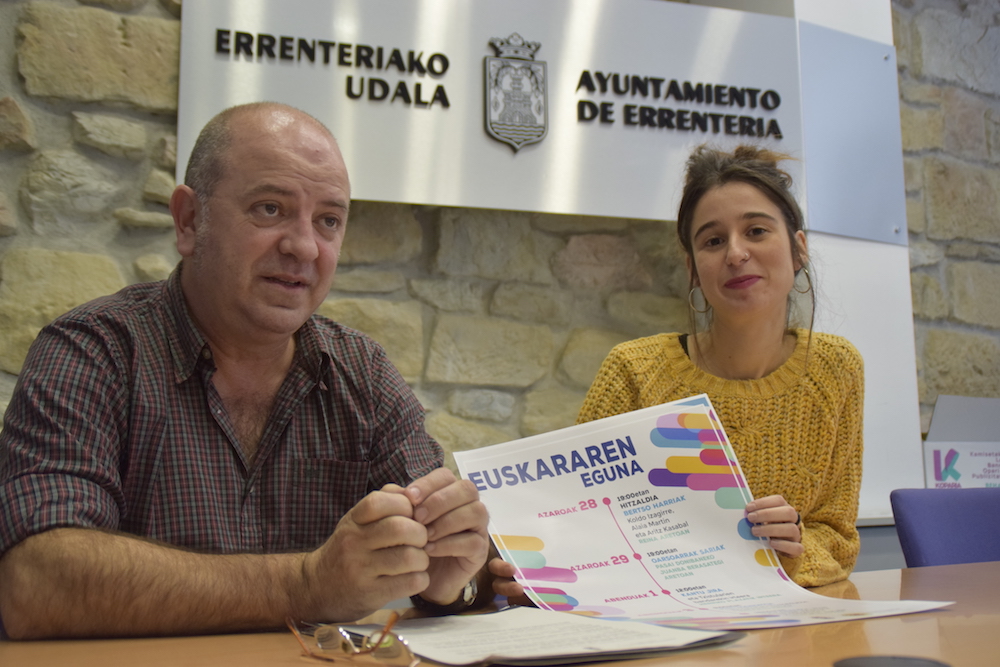 Ostolaza eta Jauregi egitaraua aurkezteko gaur egin duten agerraldian. Euskararen Egunaren harira, askotariko egitaraua antolatu du udalak. Gaur aurkeztu dute egitarau hori Itziar Ostolaza Hizkuntza Politiketako zinegotziak eta Joxe Mari Jauregi Euskara teknikariak. Ostolazak azaldu duenez bi ekitaldi mota izango dira, “herritar guztientzat irekiak izango direnak, eta jarduera itxiak, publiko zehatz bati zuzendutakoak”.