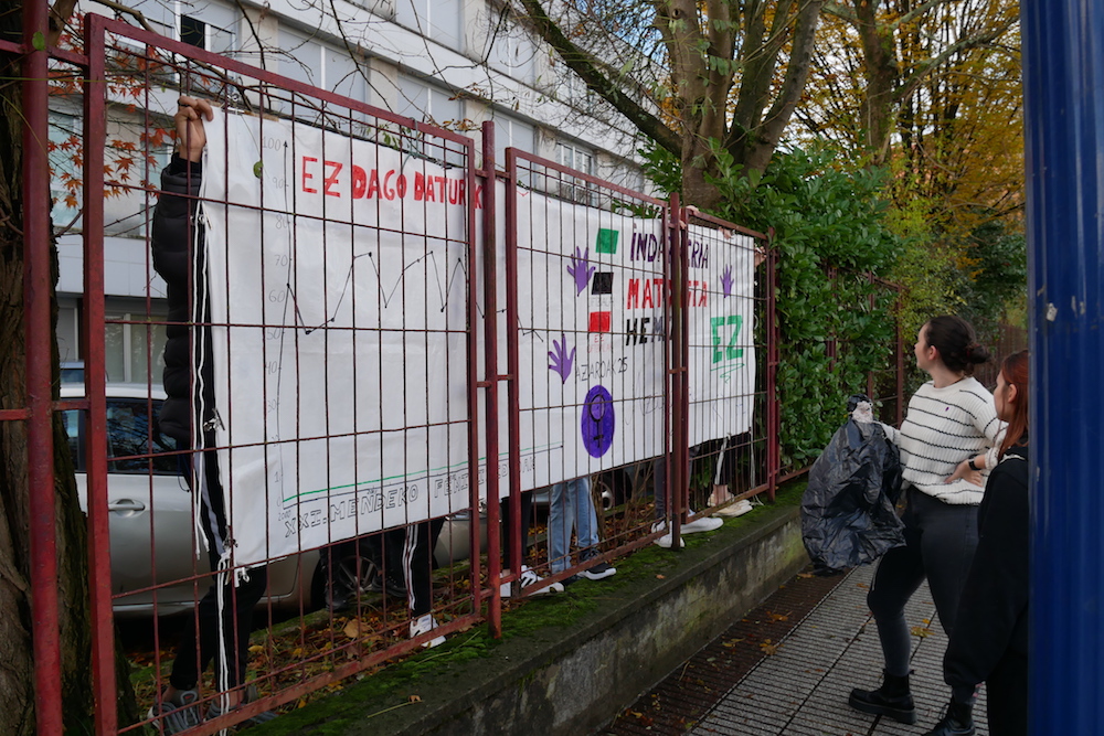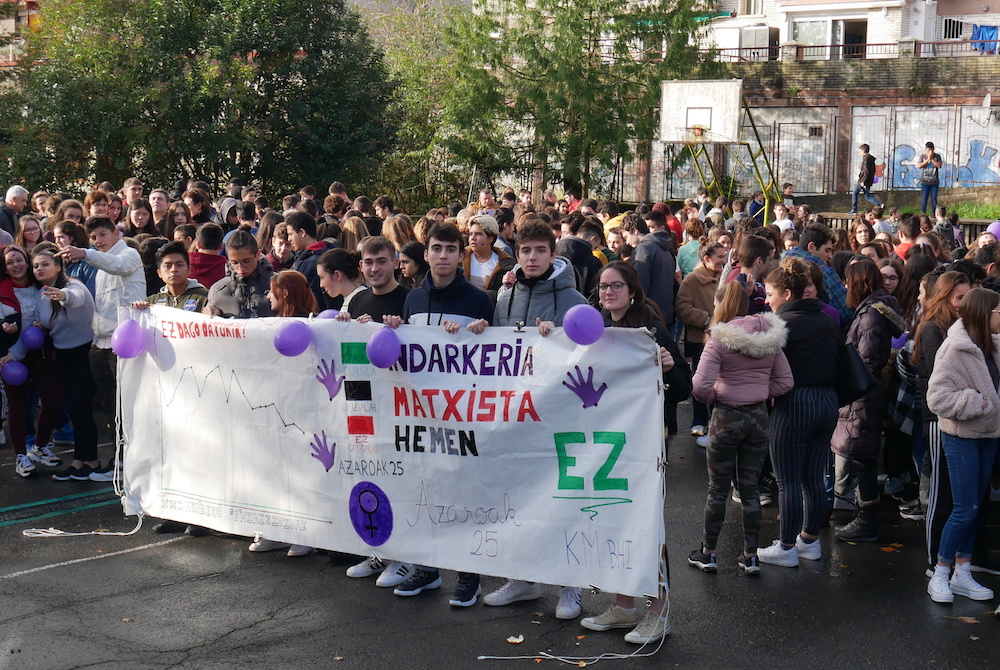Ikastetxeek ere bat egin dute indarkeria matxistaren kontra. Koldo Mitxelena institutuan elkarretaratzea egin dute ikasle eta irakasleek saskibaloi kantxan indarkeria matxistaren kontra. Ozen esan dute bertan ez dutela onartzen emakumeen kontrako erasorik. Ez da Azaroaren 25ari lotuta antolatu duten ekintza bakarra; ikastetxeko kanpoaldeko hesian pankarta jarri dute eta feminizidioen bilakaera azaldu dute datuen bidez. Hiruhilekoan gainera gaia landu dute ikasleekin eta amaitzeko, geletan jarduera ezberdinak antolatu dituzte gaur indarkeria matxista perspektiba desberdinetatik lantzeko. Koldo Mitxelena institutuko Hezkidetzako arduradunek, gainera, ikasle batzordearen lana goraipatu du, “gogoz lan egin du indarkeria matxistaren arazoa ikusgarri egiteko gure ikastetxean”.