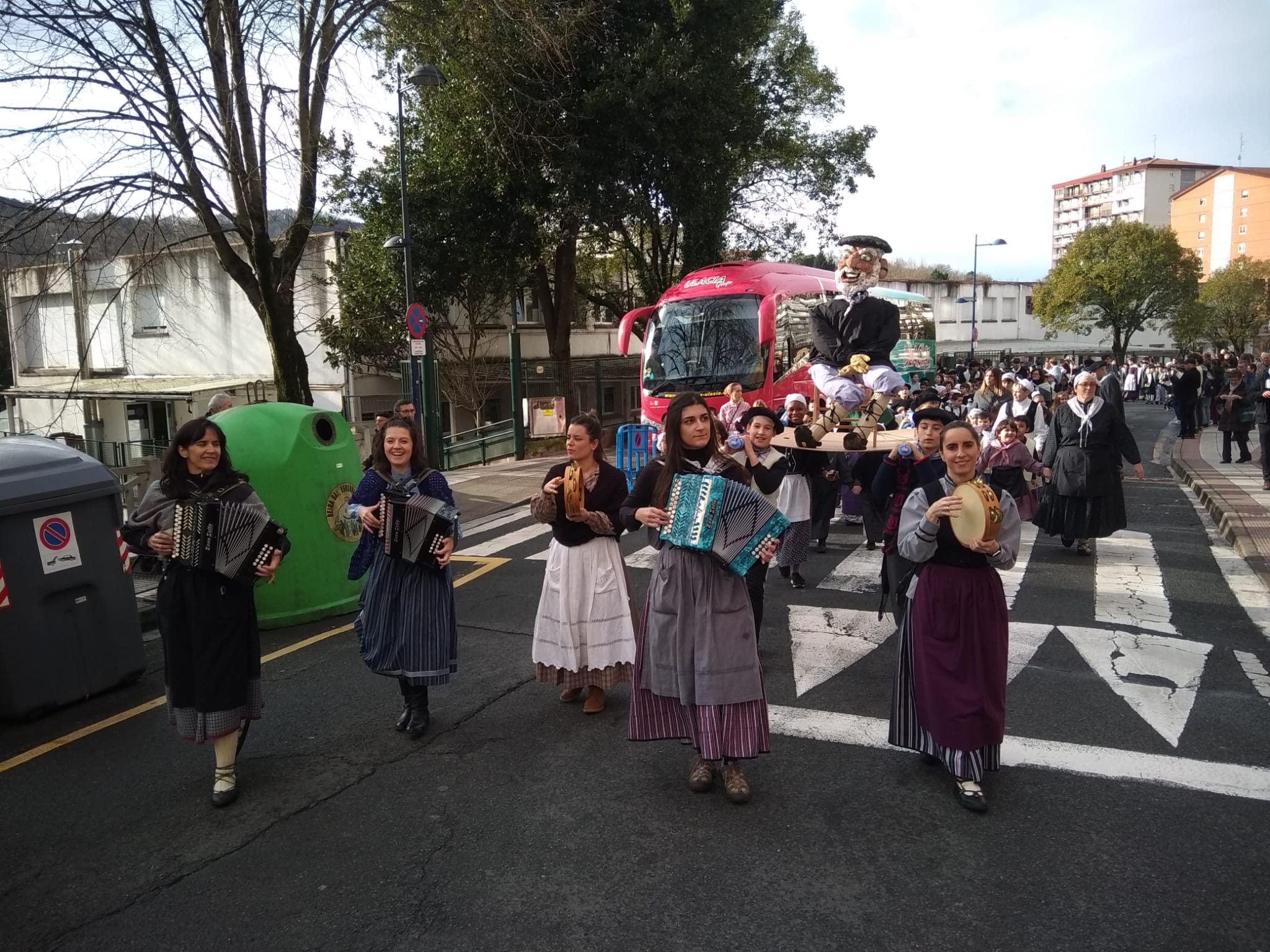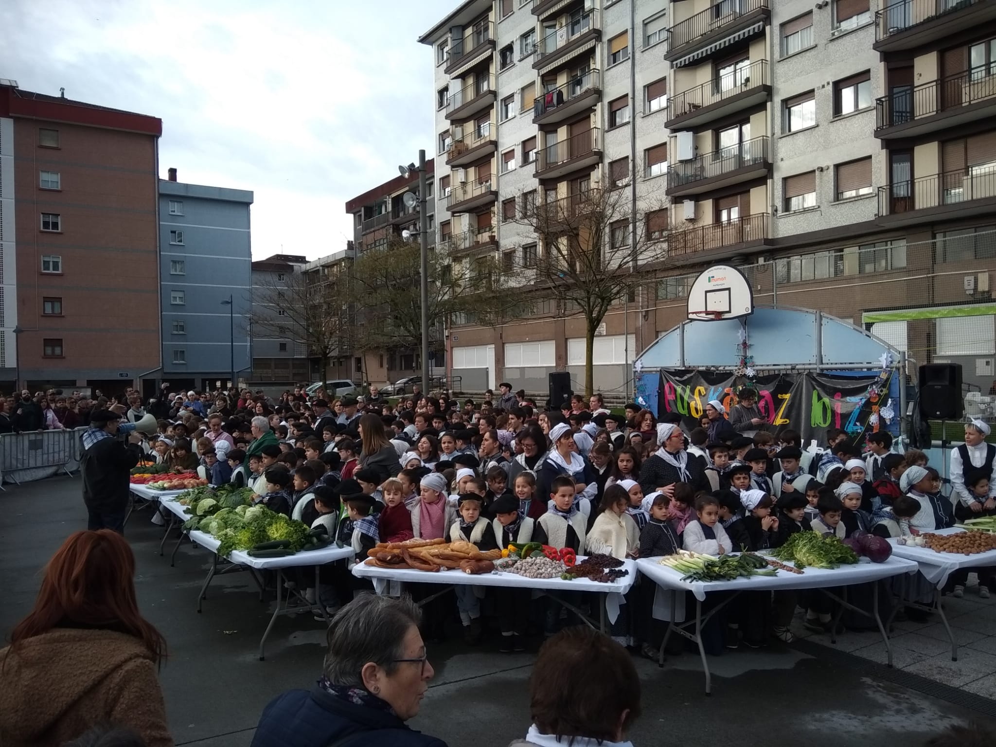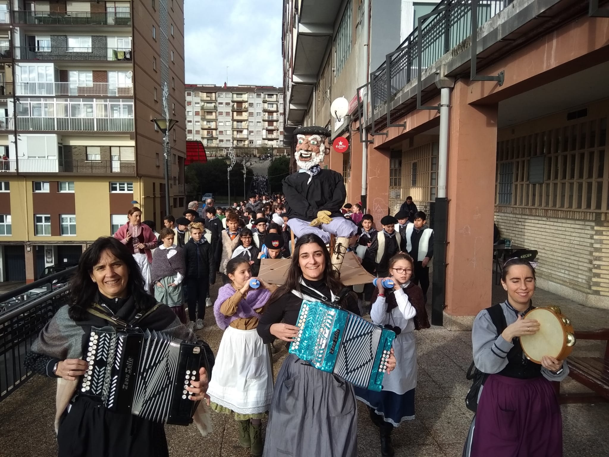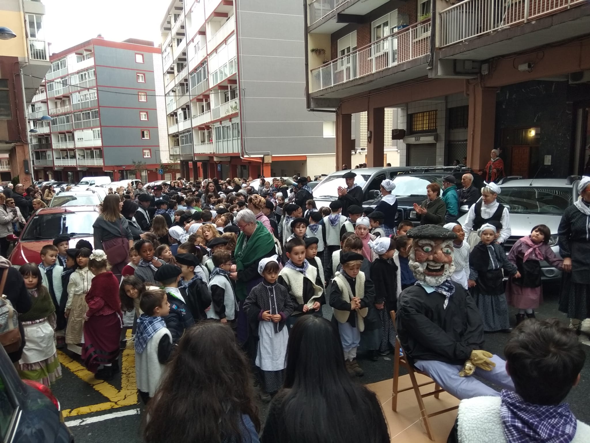Lehen Hezkuntzako ikasle guztiak Pablo Sorozabal plazan elkartu dira txistorra jateko, eta ondoren, Haur Hezkuntzako ikasleengana joan dira kalejiran auzoa girotuz.