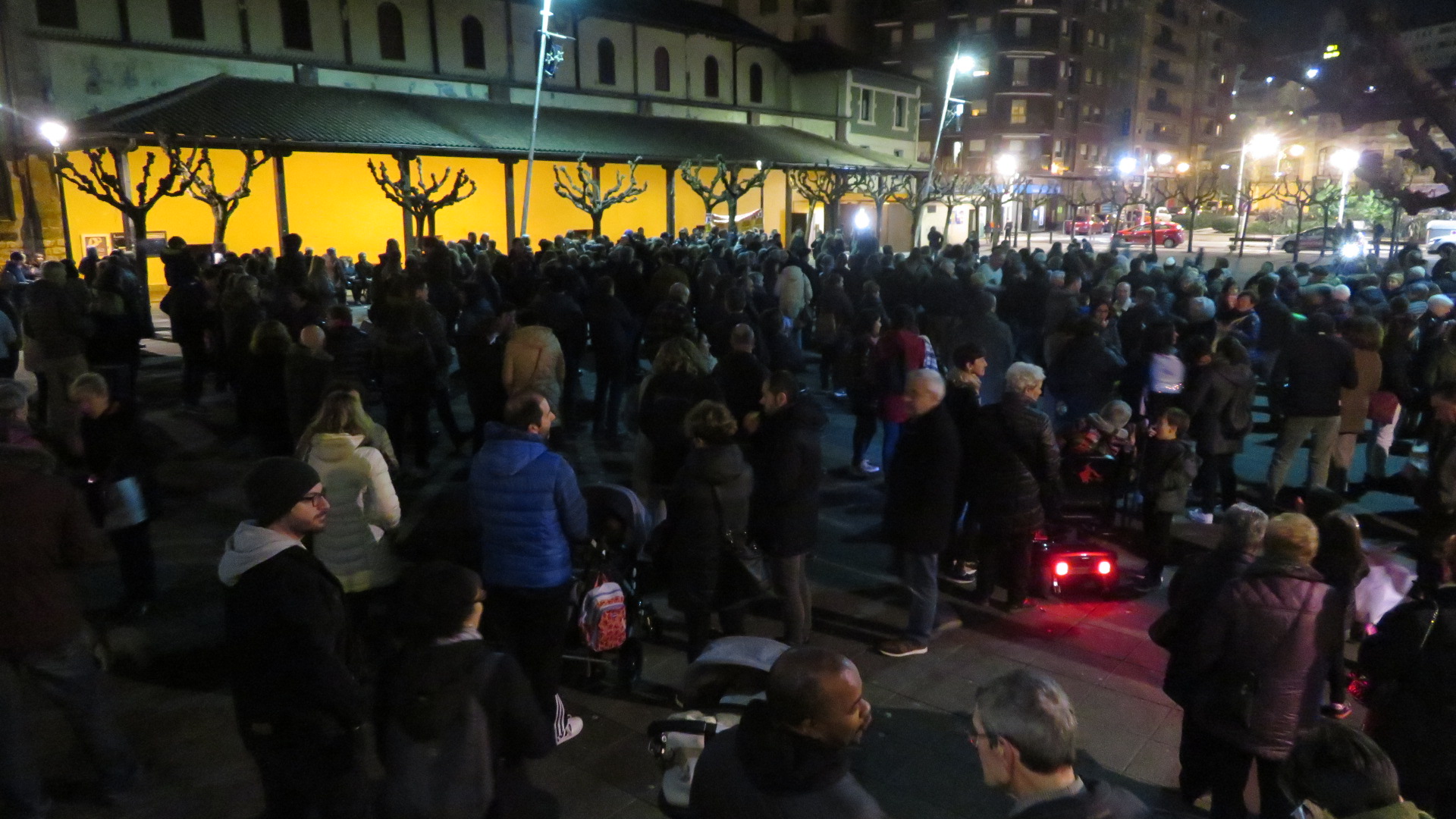 Elkarretaratzearen irudi orokorra. Antxotarrak kalera atera dira gaur arratsaldean. Pasaiako barrutiaren zentroa, Gure Zumardia, bete egin dute. Sare sozialetatik egindako deialdian -prentsak bide horretatik jaso du deialdia, HITZA tartean- “Antxo jasaten ari den utzikeria” salatu nahi izan dute. Utzikeria horren arrazoi nagusia, elkarretaratzean zeuden herritarrek zabaldu dutenez, azken aldian izan diren lapurretak dira; azken asteetan hainbat komertziotan egin dituzte lapurretak ezezagunek. Zenbait herritarri ere euren ondasunak ebatsi dizkiete, etxean edo kalean. Antxotarrak ez dira seguru sentitzen.