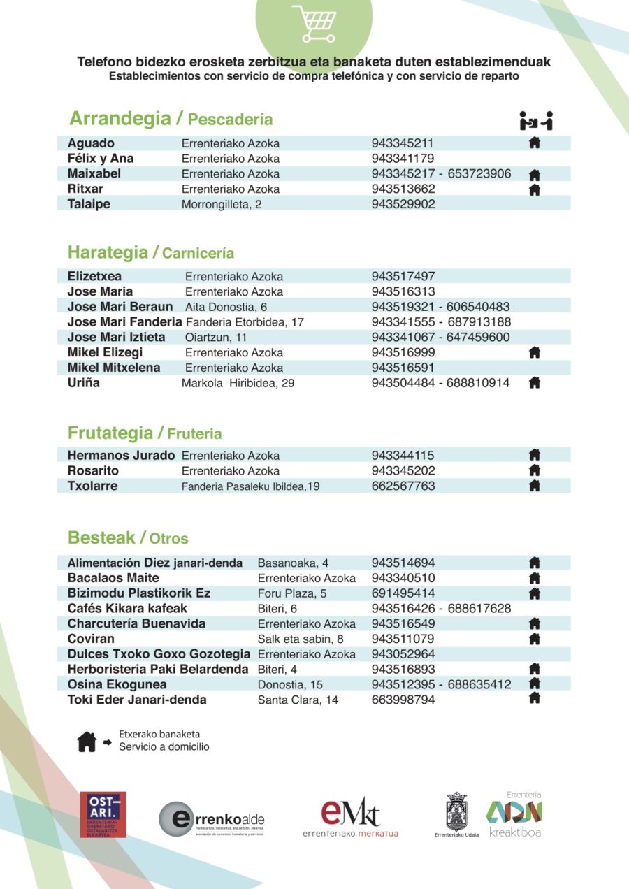 Erosketak etxetik egiteko aukera eskaintzen dute horren harira telefonoz edota whatsappez, hartara dendan eman beharreko denbora murriztu eta pilaketak saihestuta. Saltoki horietako batzuk etxez etxeko zerbitzua ere eskaintzen dute. Bezeroek eskaera jasotzera baino ez dute joan beharko dendara, edo zerbitzu hori eskaintzen dutenen kasuan, etxera eramango dituzte.