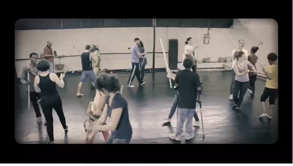 Sorkuntza bildu duen bideoaren kaptura bat. Afrikako Eguna da gaur eta Kukai Dantzak eta Etiopiako Destino Dance Companyk hoberen egiten dakiten moduan ospatu dute, dantzan. Gipuzkoa Kooperaren eskutik, sorkuntza berria josi dute Afrikako Egunaren harira, eta emaitza, benetan, ederra lortu dute, dantza urrats bakoitzean, zubia eraikiz.