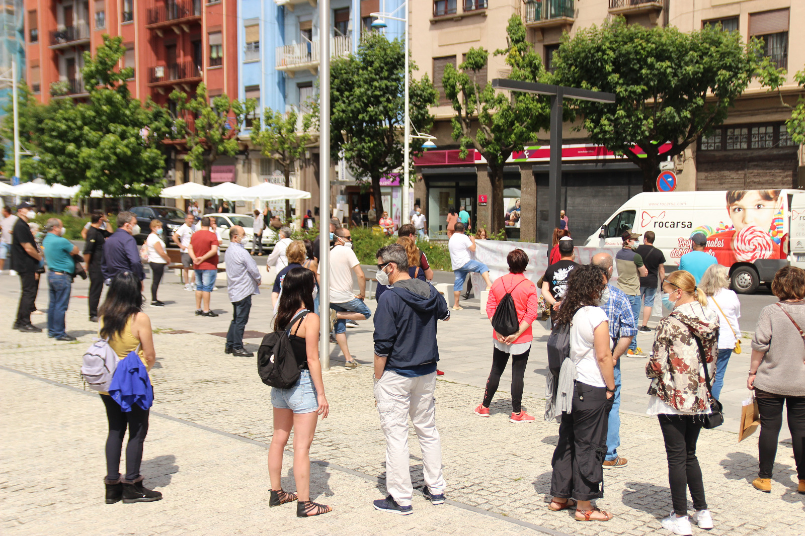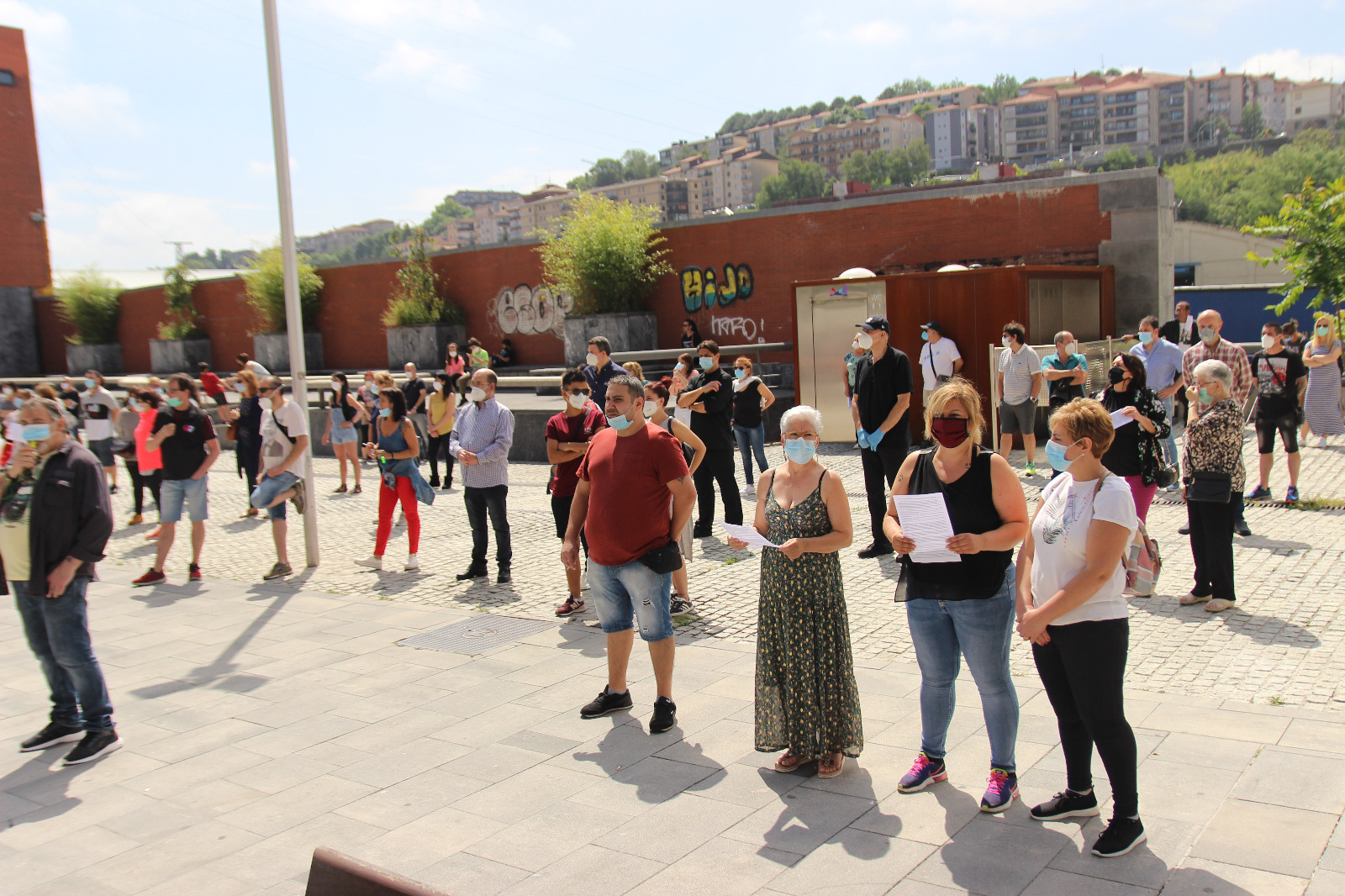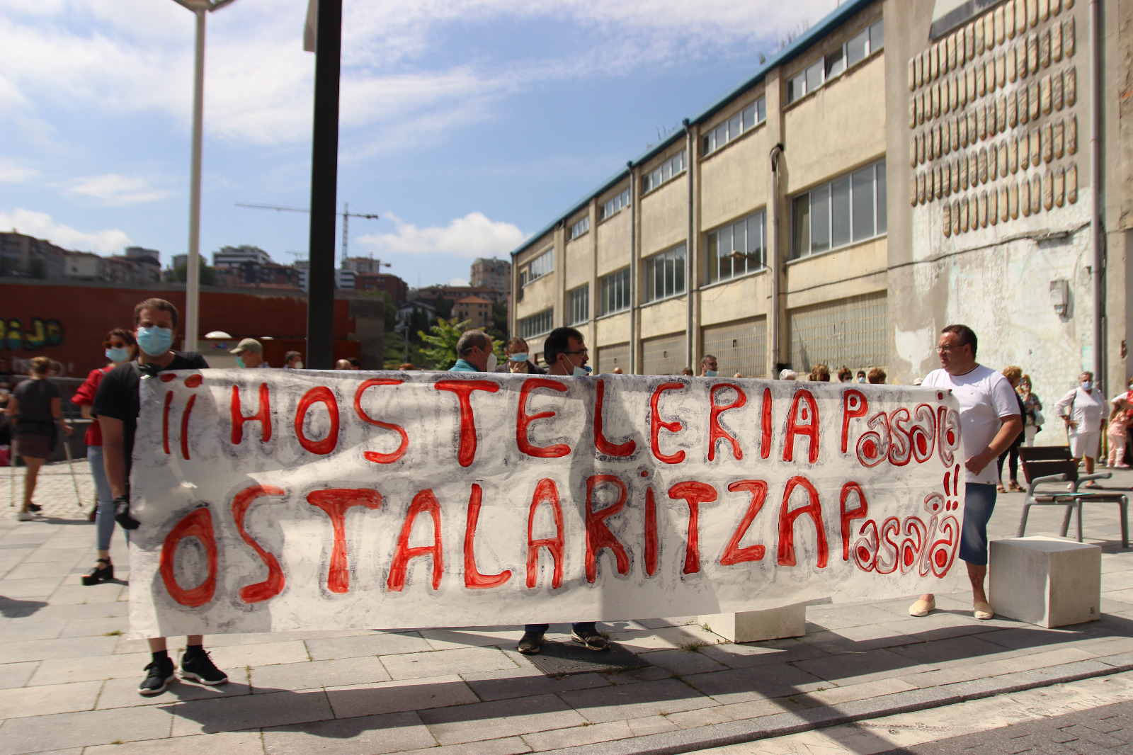 Dena dela, arduraz jokatu dute uneoro. Gutxieneko tartea bermatu da oro har, baita pankarta eusten ari zirenen artean ere. 100 ostalari inguruk hartu dute parte protestan eta ia guztiek zuten musukoa jantzita. Bizi duten egoera larriaz ohartarazi zuten atzo ostalariek ohar baten bidez. Bereziki “suminduta” agertu dira, udalak haiekiko izan duen “utzikeria” dela eta.