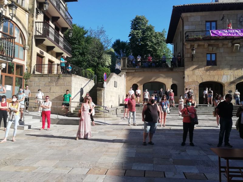 Atzo arratsaldean, astelehenean erasotua izan zen emakumea babesteko eta indarkeria matxista kasu hori eta guztiak “kasu isolatu” ez direla adierazteko elkarretaratzea egin zuten Gurutze Santuaren plazan. Egoerak eskatzen duen segurtasun neurriak (aforoa, distantzia…) betez egin zuten mobilizazioa, hamarnaka lezoarren parte hartzearekin. Tartean ziren herriko alderdi politikoetako ordezkariak, baita aldundikoak ere. “Haserrea eta amorrua baino ezin dugu sentitu”, esan zuten megafoniatik elkarretaratze isilak bidea egiten zuen bitartean. Erasoa jasan zuen emakumeari “elkartasunez beteriko besarkada” bidali zioten.
