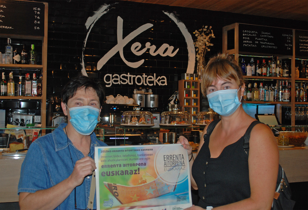 Pasaia. Loreto Osa eta Rebeca Castaño. 2019ko errenta aitorpena euskaraz egiteagatik, bapo jateko aukera izango dute Oarsoaldeko lau herrietako zortzi lagunek. Izan ere, ogasunaren aurrekoak euskaraz kudeatzea erabaki zutenen artean saria ematea erabaki zuten eskualdeko lau udalek, zozketa bidez. Bada zozketa horrek baditu irabazleak. Herri bakoitzeko onuradunak lagun batekin otordu ederra egiteko aukera izango du.