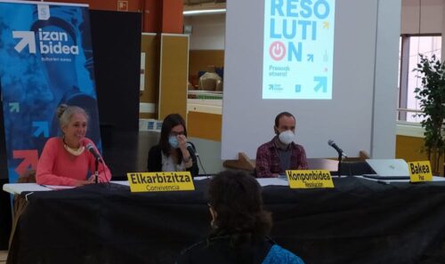 Jende asko bertaratu zen hitzaldira. Argazkia: Sare Herritarra Sare Herritarrak antolatuta Espetxea COVID garaian hitzaldia egin zuten atzo. Martin Iriberri Martuteneko kapilaua eta Libertad Frances Salhaketako kideak, espetxeetako errealitatea gerturatu zieten bertaratutakoei. Hirugarren hizlari bat aurreiksuia zegoen, Etxerat Elkarteko kidea den Urtzi Errazkin, baina ezin izan zuen parte hartu azkenean. Moderatzaile lanetan, Arantxa Urbe aritu zen.