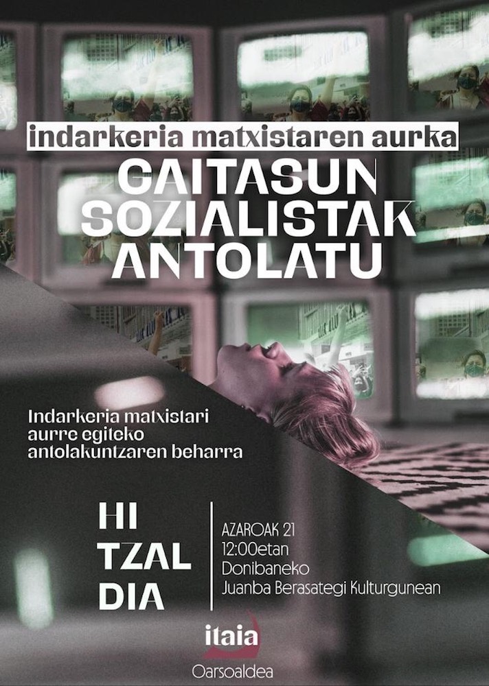 Indarkeria Matxistaren Kontrako Eguna dela eta (hilak 25) Oarsoaldeko Itaiak hitzaldia antolatu du larunbatean 12:00etan Donibaneko Juanba Berasategi aretoan.