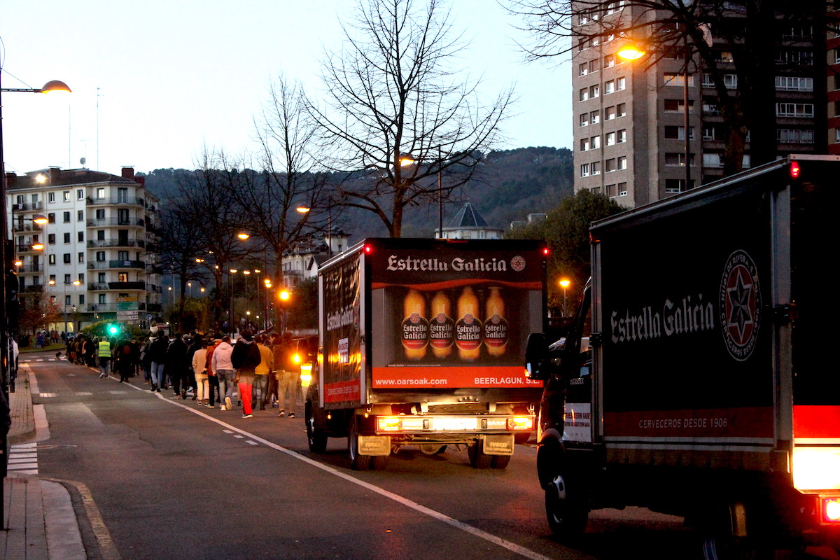 Norbanakoek ireki dute bidea, ostalarien egoera latzari konponbidea emateko eskaerak oihukatuz. Hornitzaileek jarraitu diete, euren banaketa ibilgailuen barrutik argiak eta klaxonak dardaraziz.