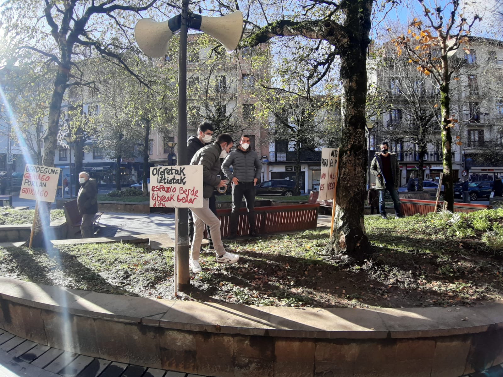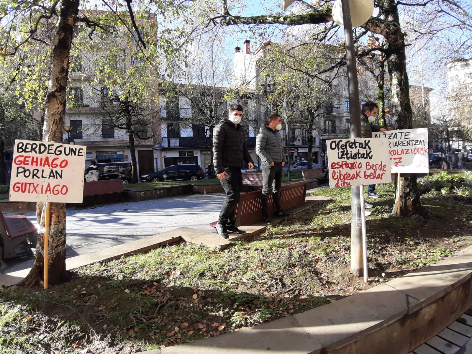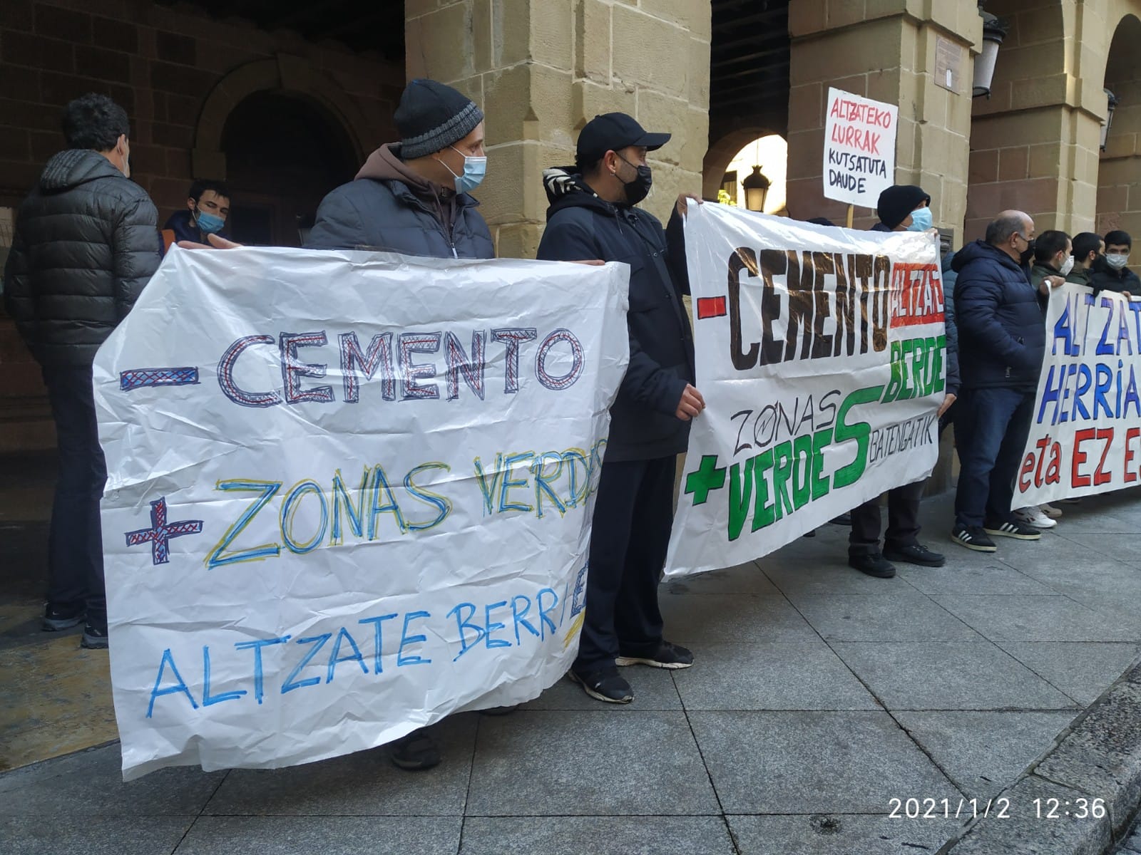 Udaletxe aurrean elkarretaratzea egin zuten, Altzaten etxebizitzak eraiki beharrean zonalde berdeak egiteko eskatu, eta eremu horrek herriarentzako behar duela aldarrikatzen zuten kartelekin.