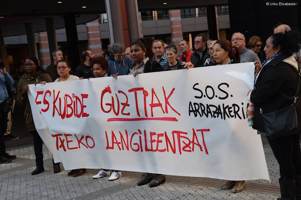Errenteriako SOS Arrazakeriako Etxeko Langileen taldeko emakumeak elkarretaratze batean , beraien eskubideen alde egiten. Mira instalazio artistikoa zabalduko dute Errenteriako Emakumeen Etxearen kanpoaldean hurrengo asteartean, martxoaren 9an. Espazio publikoaren eta pribatuaren arteko muga sinbolizatu nahi duen ate bat da, eta etxeko lanetan ari diren emakume migratzaileen testigantzak bilduko dituzte han.