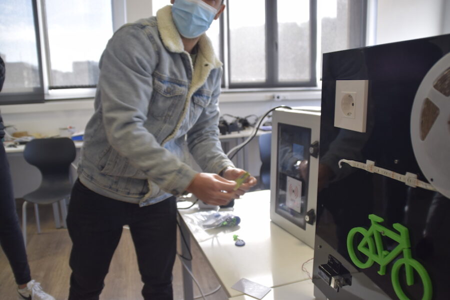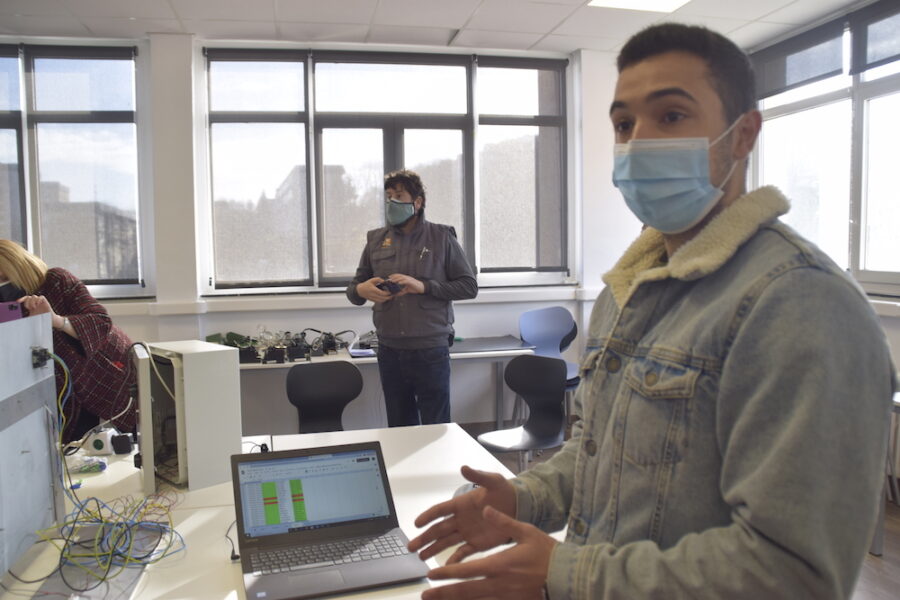 Adrian Prieto, Alex Zapata eta Joakin Arroyo ikasleak daude proiektuaren atzean, eta beraiek azaldu dute lehen eskutik gaur goizean bizikleta aparkalekuaren funtzionamendua. Txartel edo giltza berezi bidez erabili ahalko da, baita Mugi txartelarekin. Hori detektagailu batera hurbilduta, aparkalekuaren sarrailak desblokeatu eta atea zabaltzeko aukera emango dio erabiltzaileari. Pantaila du aparkalekuak: Argi txuriak bizikleta sartu daitekela adieraziko du, eta erabiltzaileren batek, nahigabe, atea zabalik utziko balu, pantaila horren bidez jakinaraziko litzaioke. Halaber, sistema informatikoan erabiltzaileak erregistratuta gelditzen dira, erabilera portzentaia ezagutu ahal izateko. Grafika baten bidez, proiektua bideragarria den edo ez erakutsiko du, erabiltzaile bakoitzak zenbat erabili duen, aparkalekuak berak zein erabilera orokorra duen erakutsiko baitu.