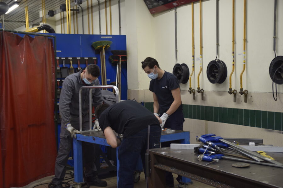 Zazpi aste behar izan dituzte ikasleek behin betiko prototipora heltzeko, eta une honetan tailerrean ari dira Don Boscoko galdaragintza ikasleak pieza guztiak moztuta muntaketa lanetan hasteko, lehen aparkalekua egi bihurtzeko. Aluminioa erabili dute bizikleta aparkalekua egiteko Markel Manterola, prototipoa gauzatzen ari diren taldekidetako batek azaldu duenaren arabera.