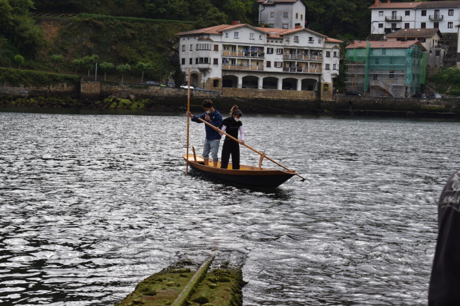 Albaolako ontzigintza eskolako bi ikasle internazionalek eraikitako ontzia uretan da. Italiako itsas ondarea berreskuratzeko saiakera izan da proiektua.