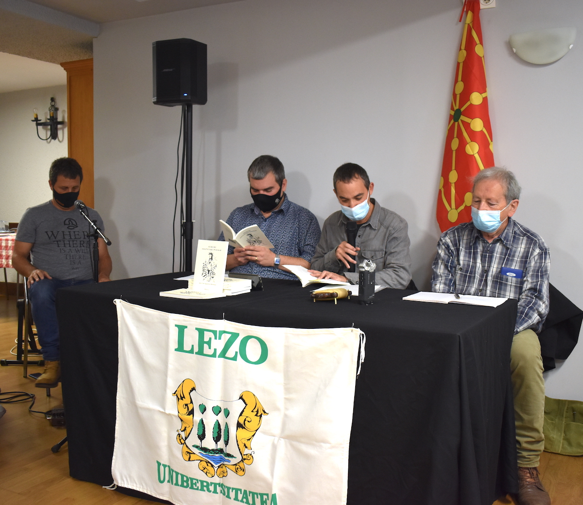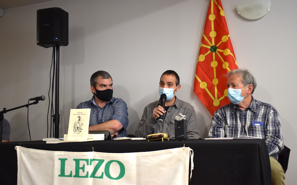 Iñaki Labaka abeslariak ere egin du bere ekarpena gaur goizeko topaketan, izan ere, liburuko hiru poemari doinua jarri eta abesti bilakatu baititu lezoarrak. Honakoa da sorkuntzetako bat: