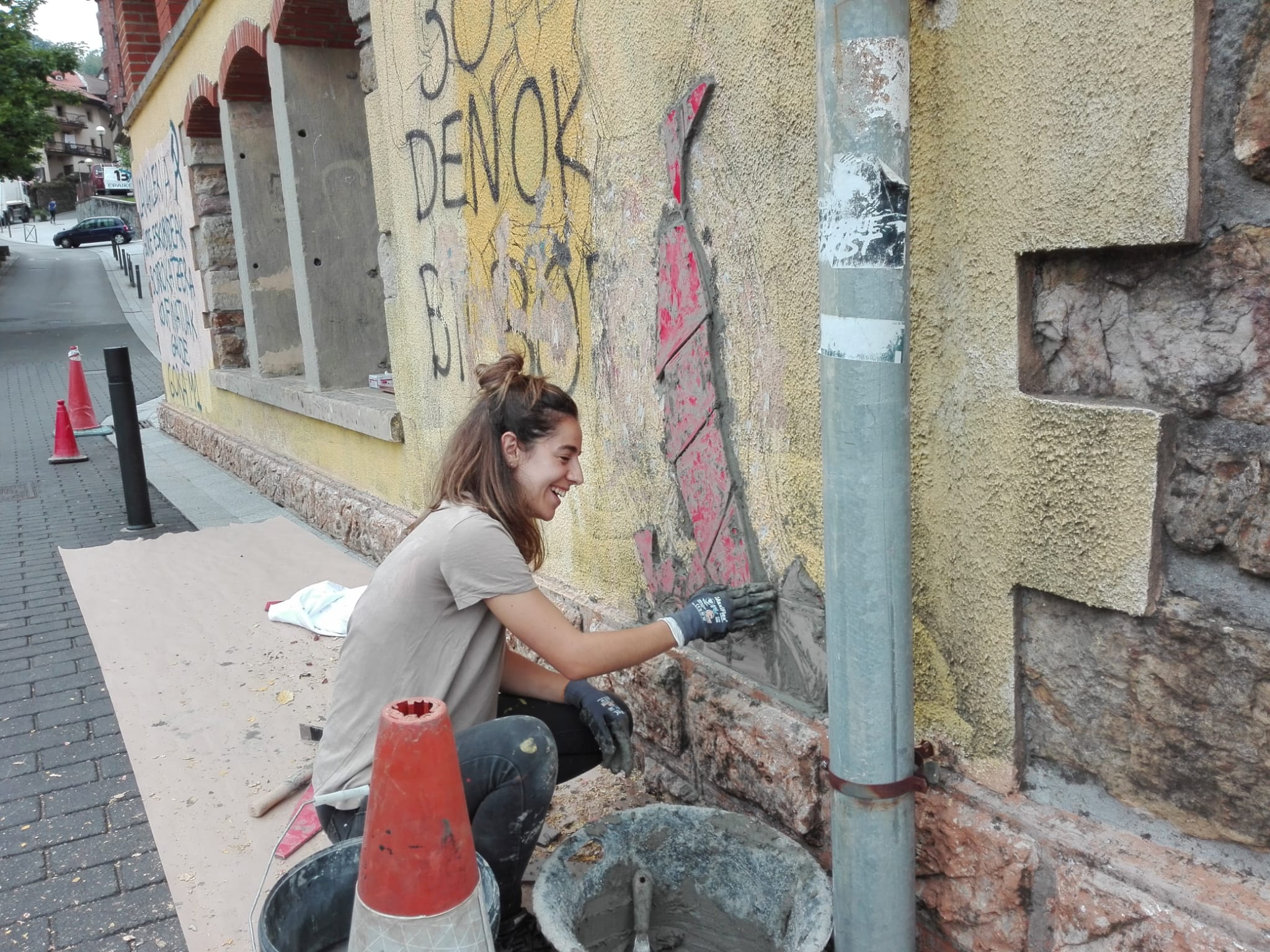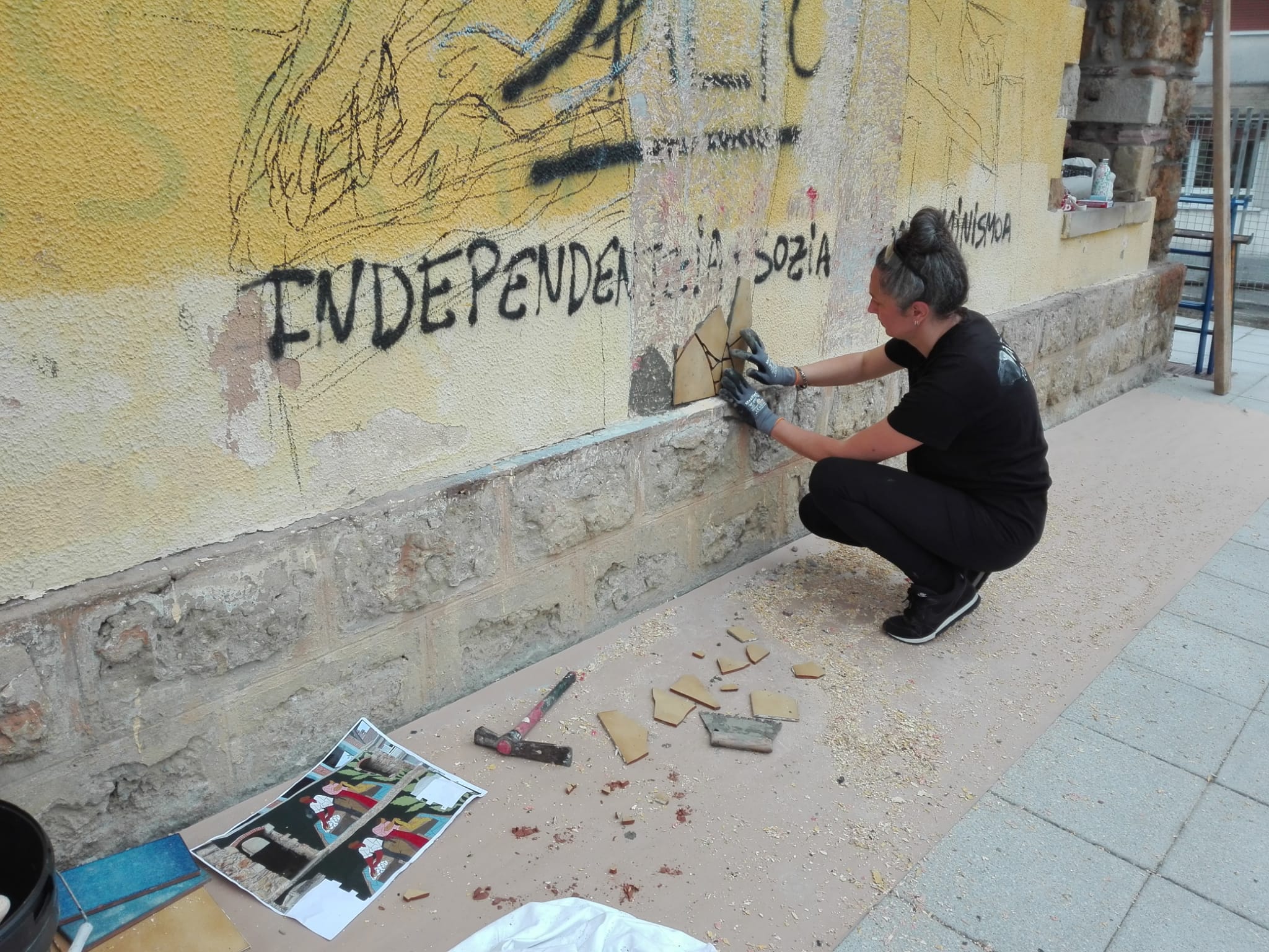 Oiartzungo labaderoa era kolektiboan itxuraldatzeko bidea abiatu dute gaur goizean. Kulturabirusaren barruko sormen iniziatiba da, emakumeei zuzendua, eta asmoa da mosaiko murala egitea tailer izaerarekin.