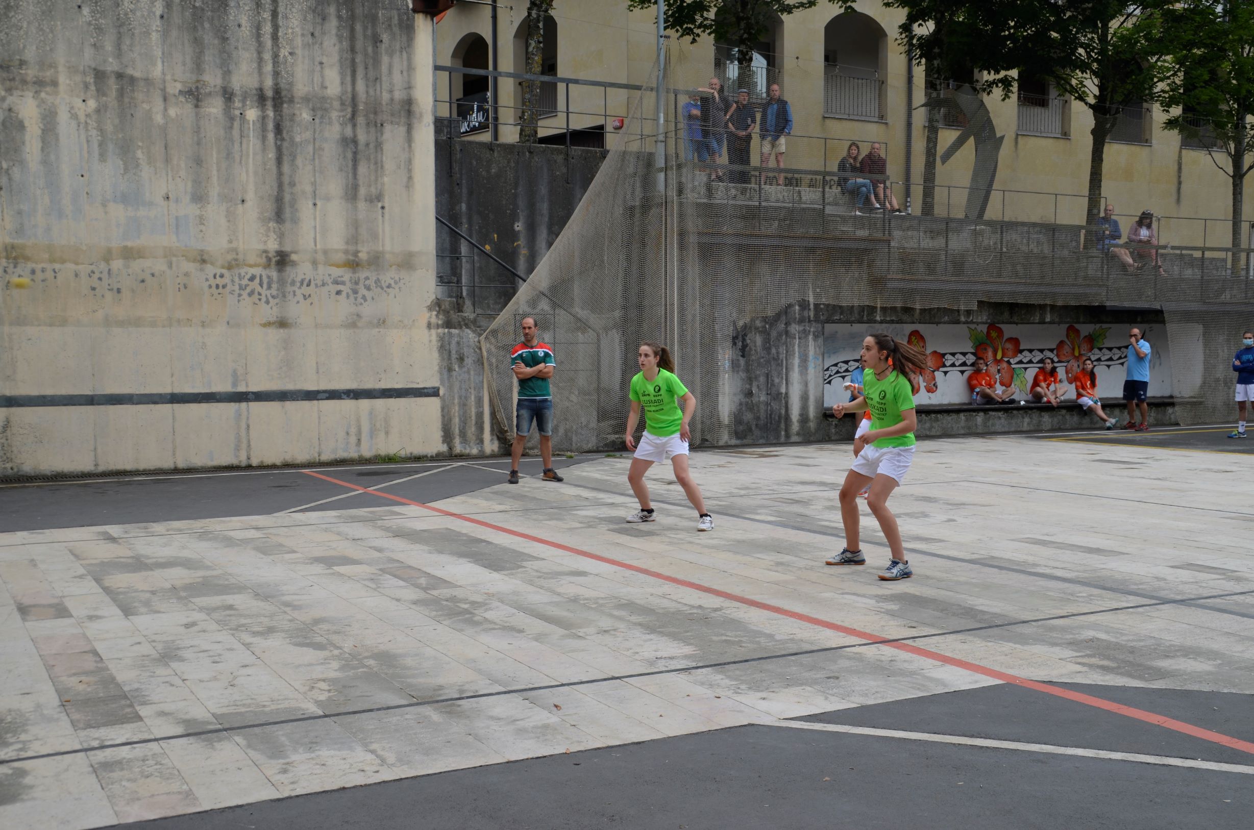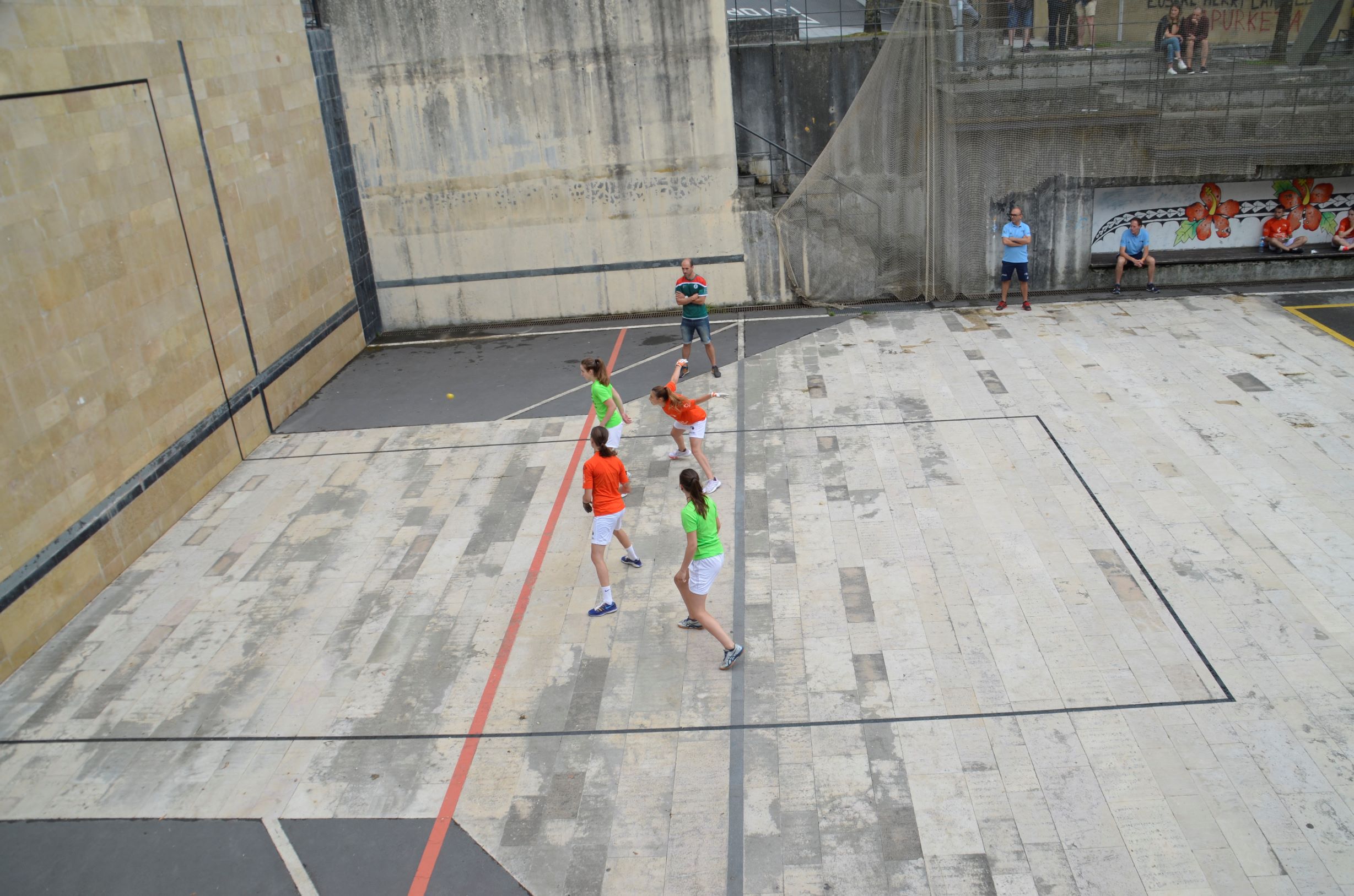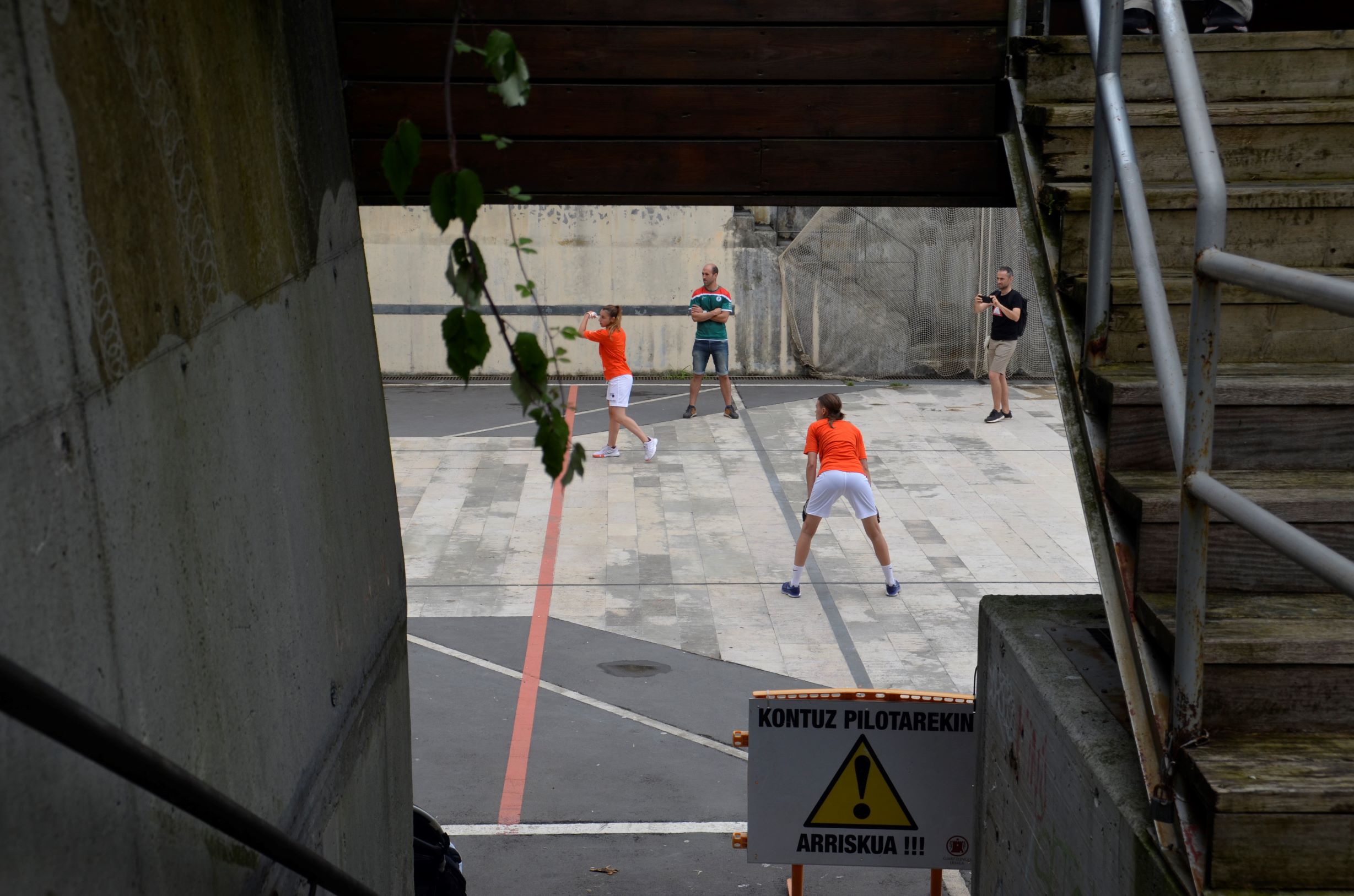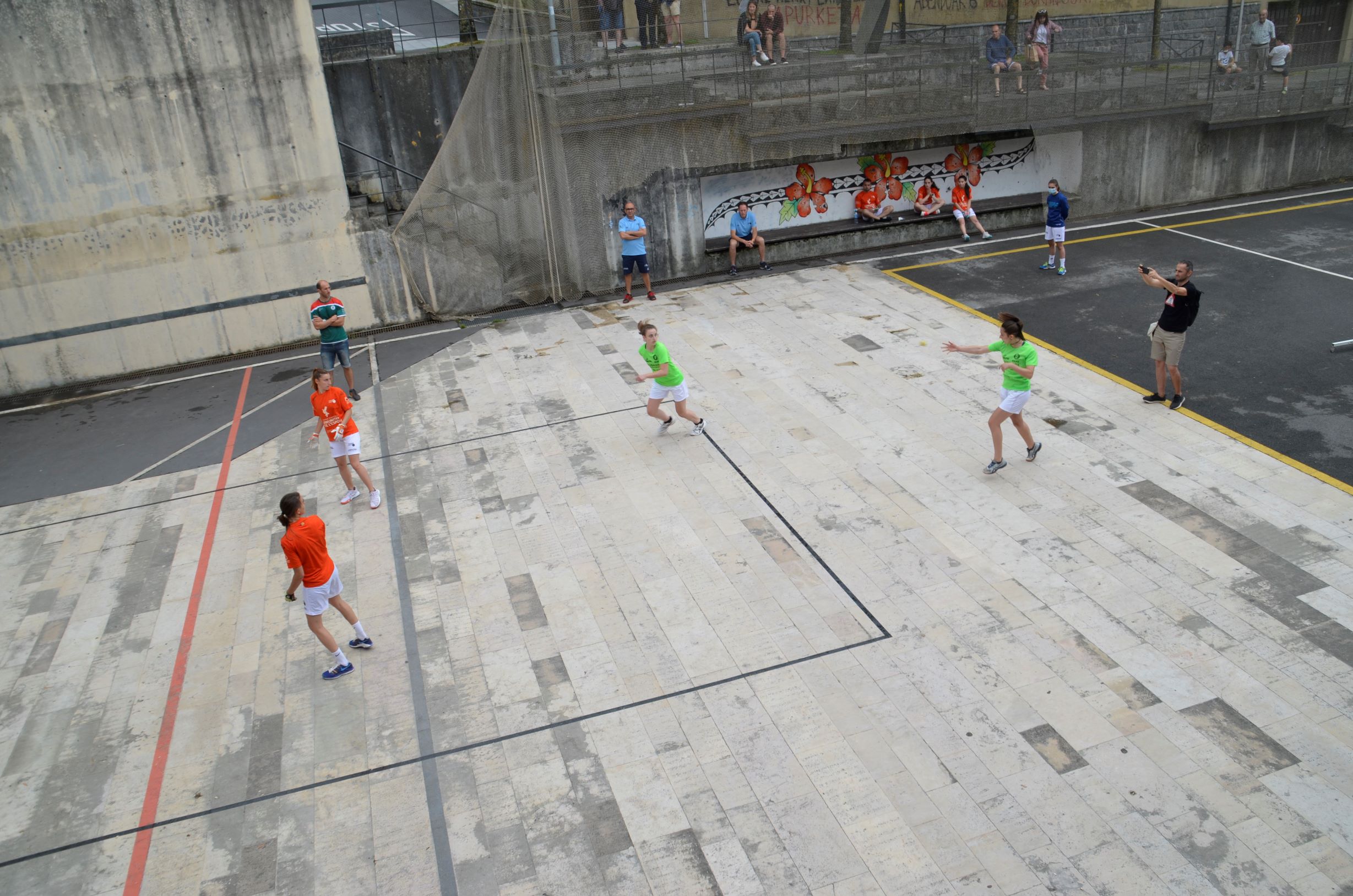Emakumeak partiida hasi aurretik gaur eguerdian. Euskal Herriko Selekzioa eta Valentziakoa joko zuzeneko nazioarteko partidak jokatzen ari dira gaur eta bihar Oiartzungo Madalensoron. Bi herrialdeek egiten duten hirugarren topaketa da aurtengoa, Euskal Pilota Federakuntzak eta Federacio de Pilota Valencianaren iniziatibaz.