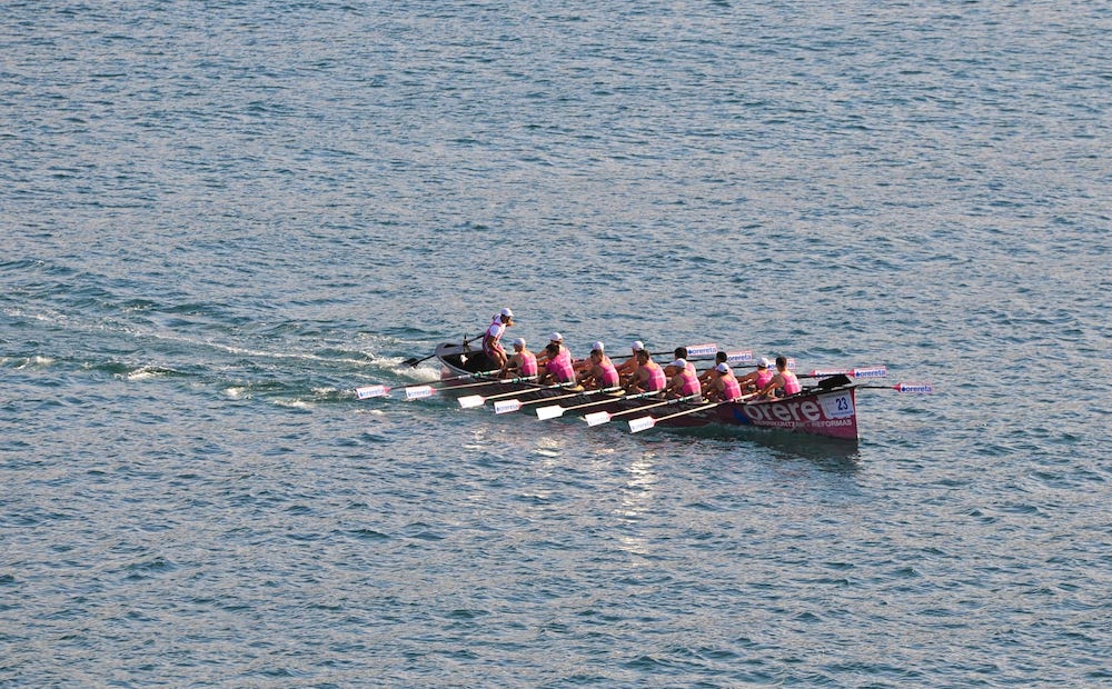 Gaur jokatu da gizonezkoen Kontxako Banderarako sailkatze estropada, eta bertan izan dira Pasaiako arrosak eta moreak, sailkatu ez, baina bai, ordea, onena emanda. Zail zuten, oso, zazpi txarteletako bat eskuratzea, baina aurpegia eman dute Donostiako uretan, abisu horiarekin, metro erdiko olatuen kontra arraunean.