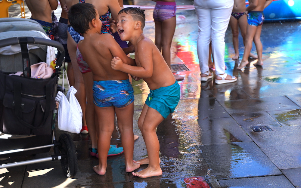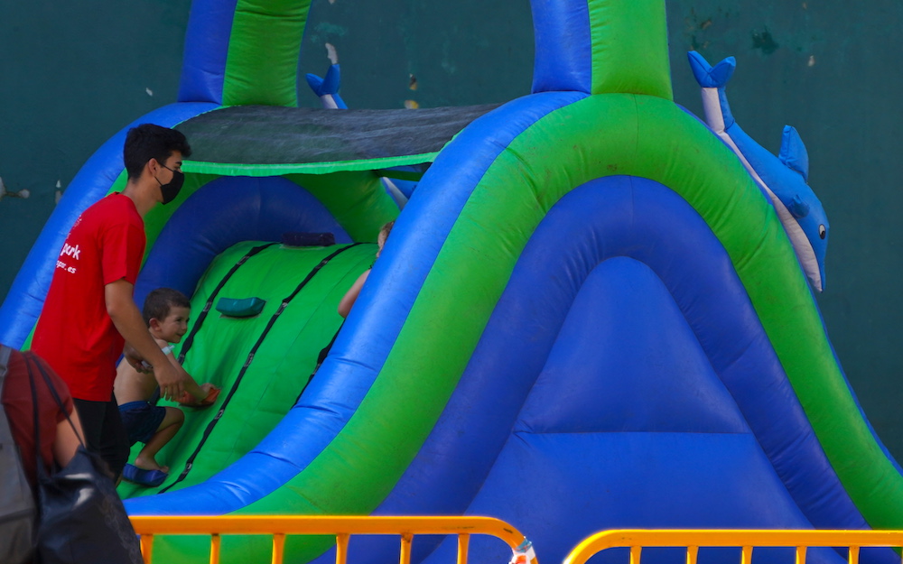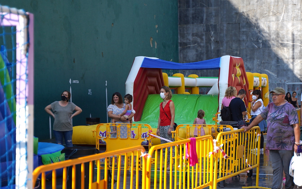 Eguraldia lagun, ur puzgarriekin gozatua hartu ahal izan dute San Pedroko familiek. Arratsaldean Javi DJ-ak girotutako bingoa izango dute, plazan.