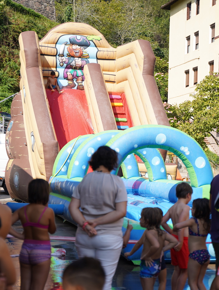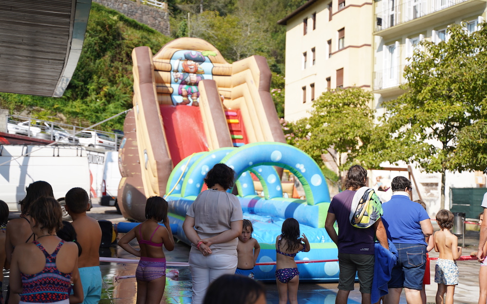 Poz eta ilusioz blai ari dira ospatzen San Pedro Txikiak herriko gazteenak. Goizean, 11:00etatik aurrera, ur puzgarriek hartu dute barrutiko frontoia, eta arrakasta hutsa izan da, txirristan behera zetorrenak ez baitzuen denbora galtzen berriro ilaran jartzeko.