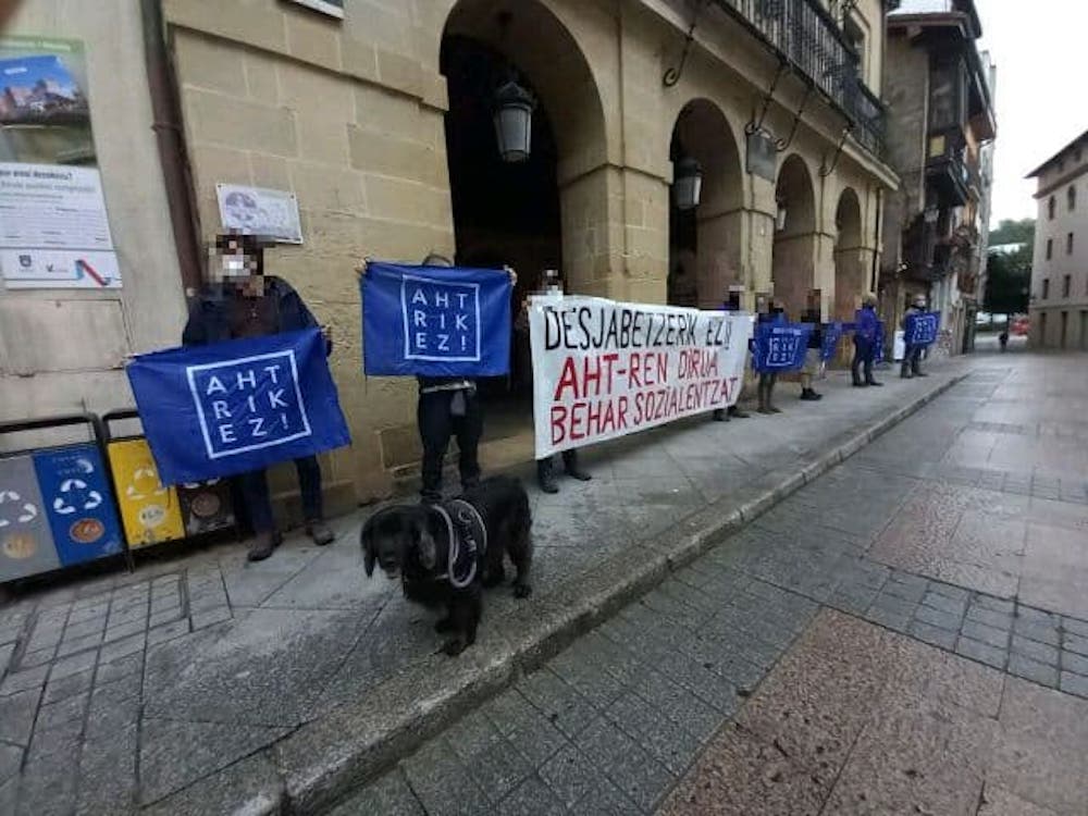 Ekintzaileen protesta gaur Errenteriako Udaletxearen kanpoan. Argazkia: Oarsoko AHT Gelditu Bigarren egunez, Astigarraga eta Irun arteko AHTaren obrak direla eta tramitatzen ari diren nahitaezko desjabetzeen kontrako protestak egin ditu Oarsoaldeko Abiadura Handiko Trena Gelditu plataformak. Atzo Lezon egin zuten protesta, eta gaur goizean Errenteriako udaletxearen aurrean egin dute. Desjabetzeak bertan behera uzteko eskatzen ari da plataforma protesten bidez, eta AHTaren lanetan “xahutuko” den dirua, eginkizun sozialetara bideratzeko.