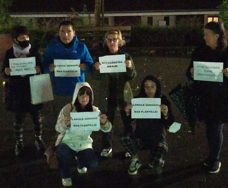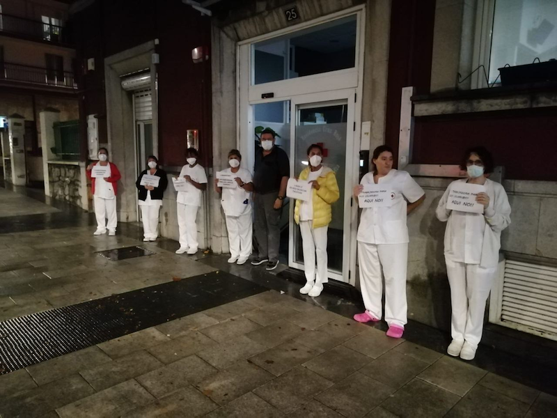 Bi greba egun horien harira, gaur goizean protesta ekintzak egin dituzte Oarsoaldeko eta Bidasoko hainbat egoitzatan, zehazki Errenteria-Oreretako Sanmarkosenen, Oiartzungo Petra Lekuonan, eta Irungo Gurutze Gorrian. Bertakoak dira ondoko irudiak, ELA sindikatuak jasotakoak.