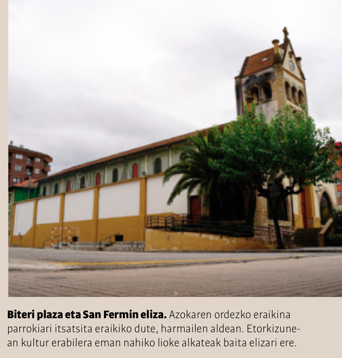 Eraikin berria Biteri plazan, elizari itsatsita, eraikitzea ez da ideiarik onena, «baizik eta aukera bakarra», aitortu du alkateak.