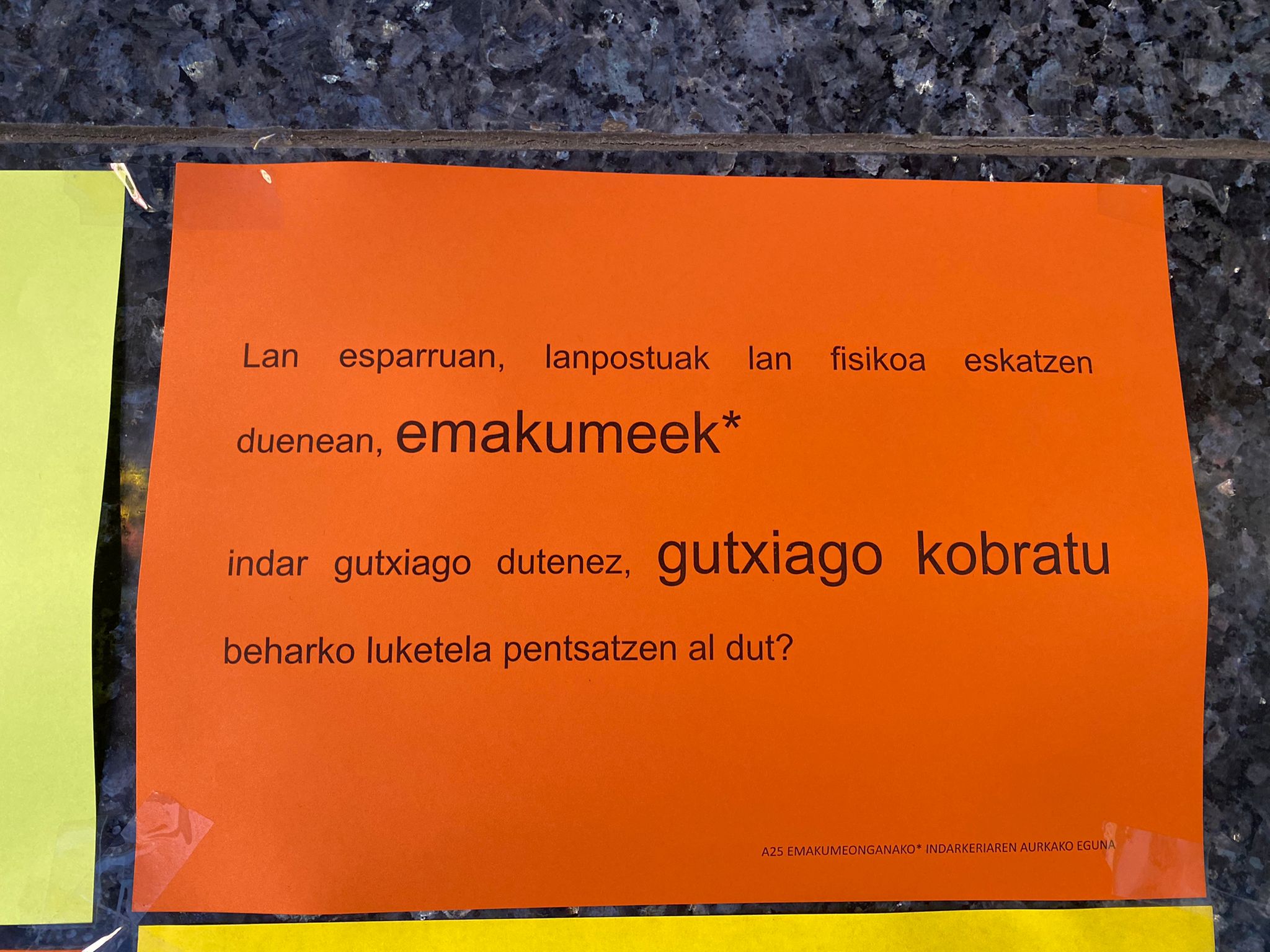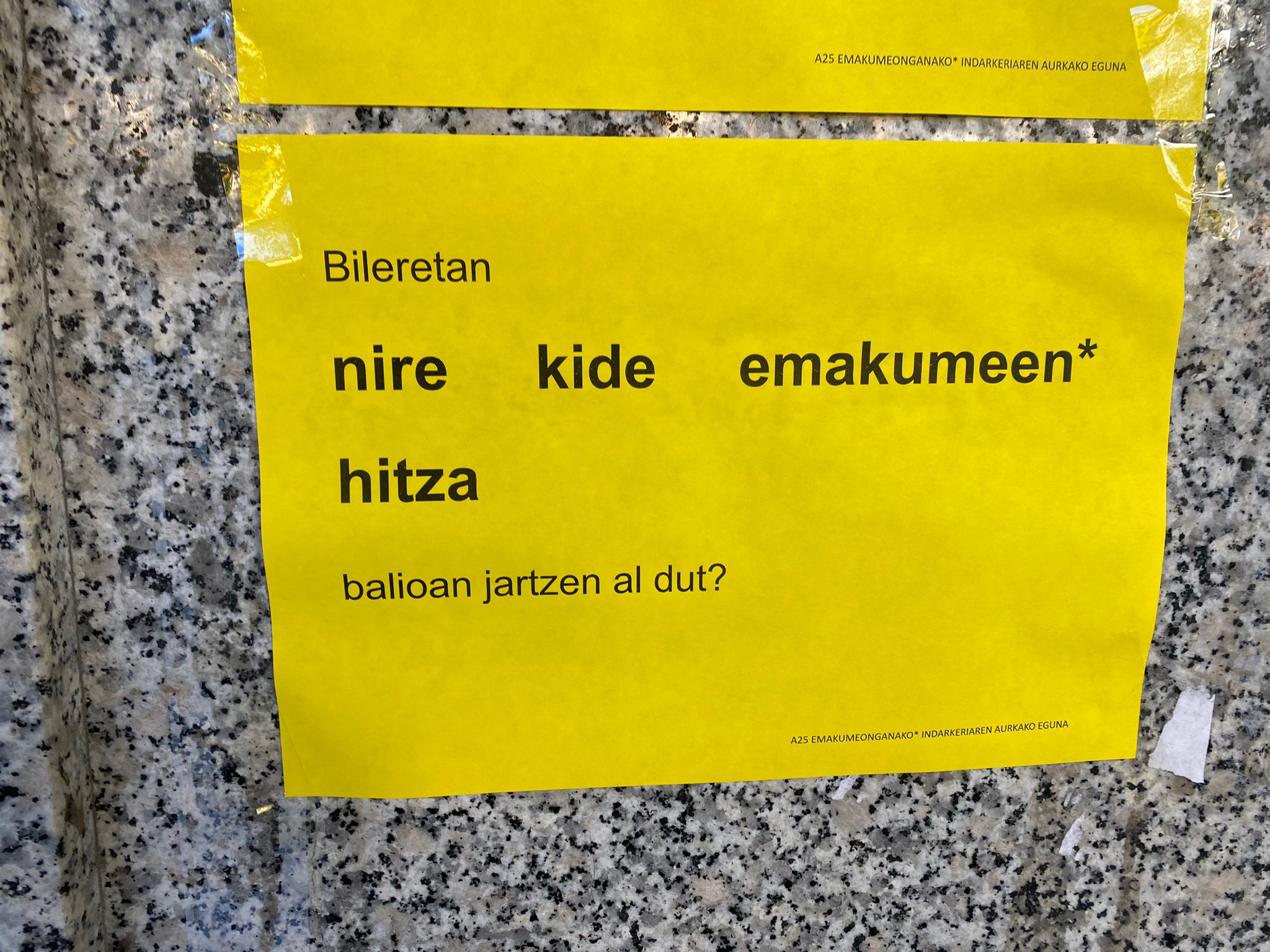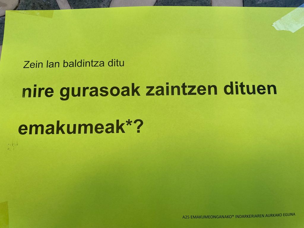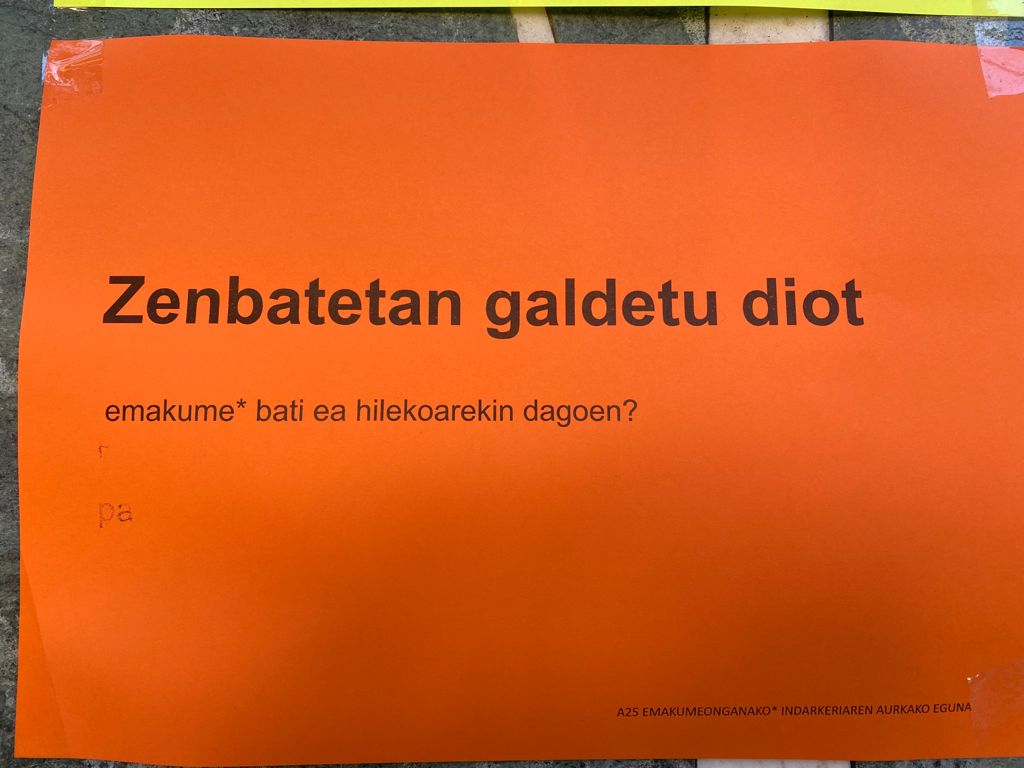 Gizartearen matxismo estrukturala elikatzen denok dugun erantzukizunaz pentsarazteko orotariko galdekizunak topa daitezke gaur barrutiko kaleetan; izan ere, eguneroko jarreren gainean hausnarketa egiteko mezudun kartelak baitira Antxo hartu dutenak. Hona hemen horietako batzuk: