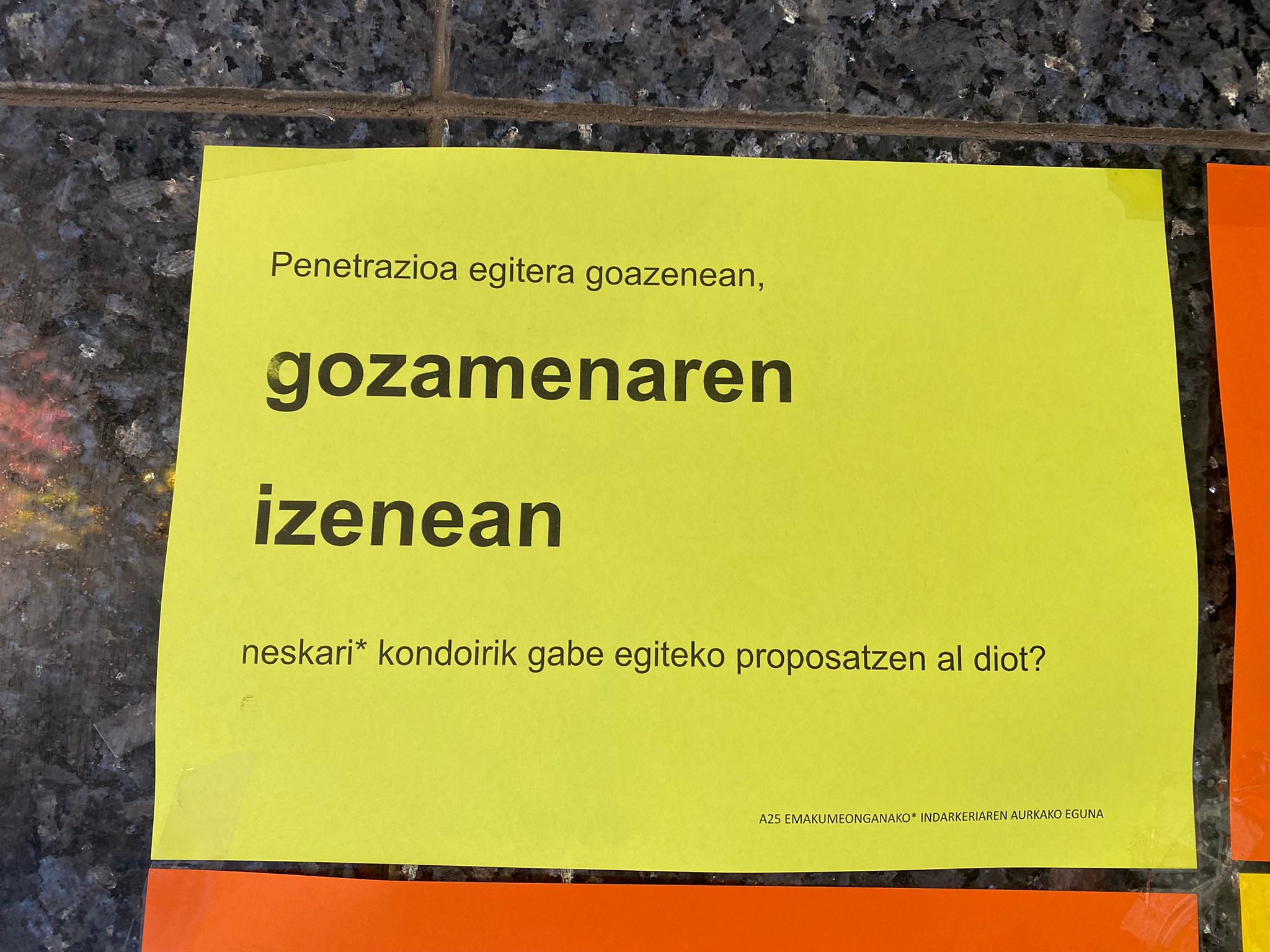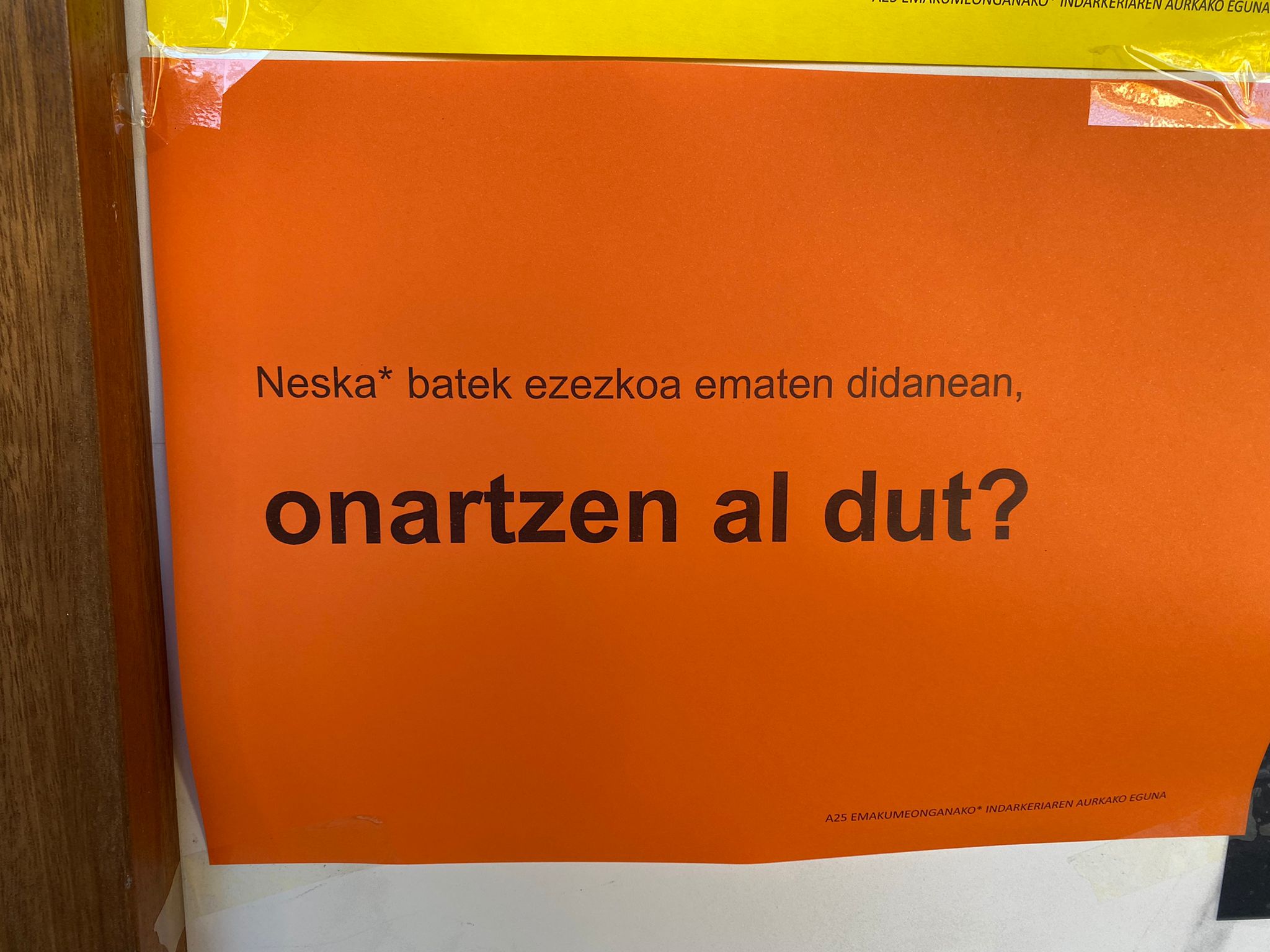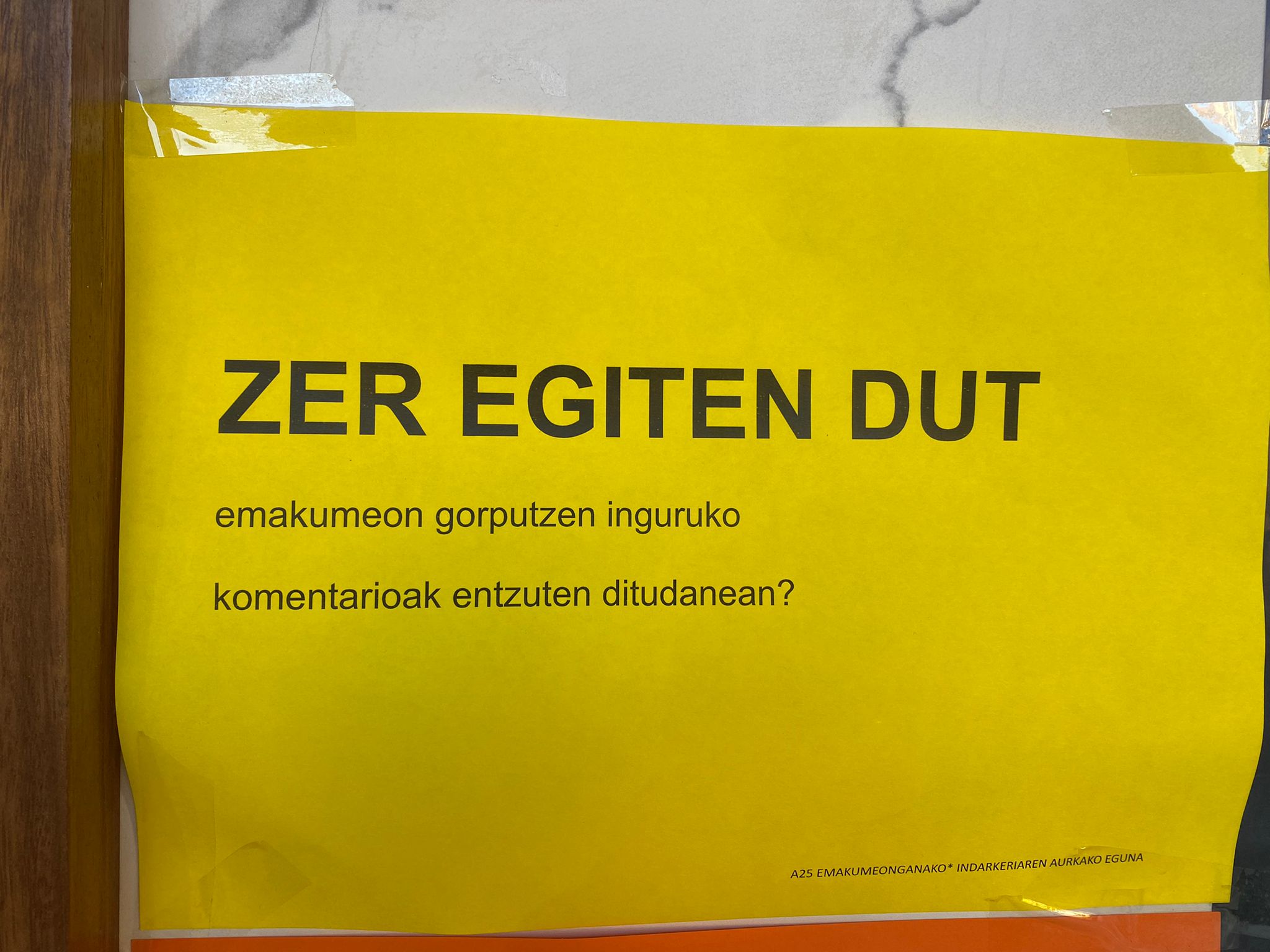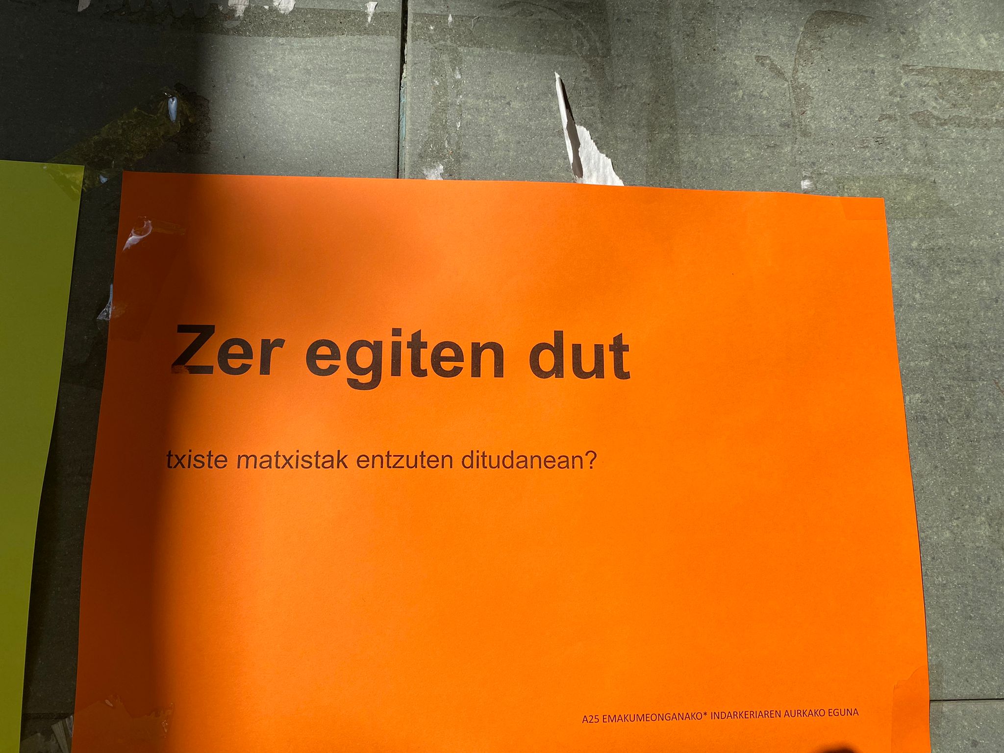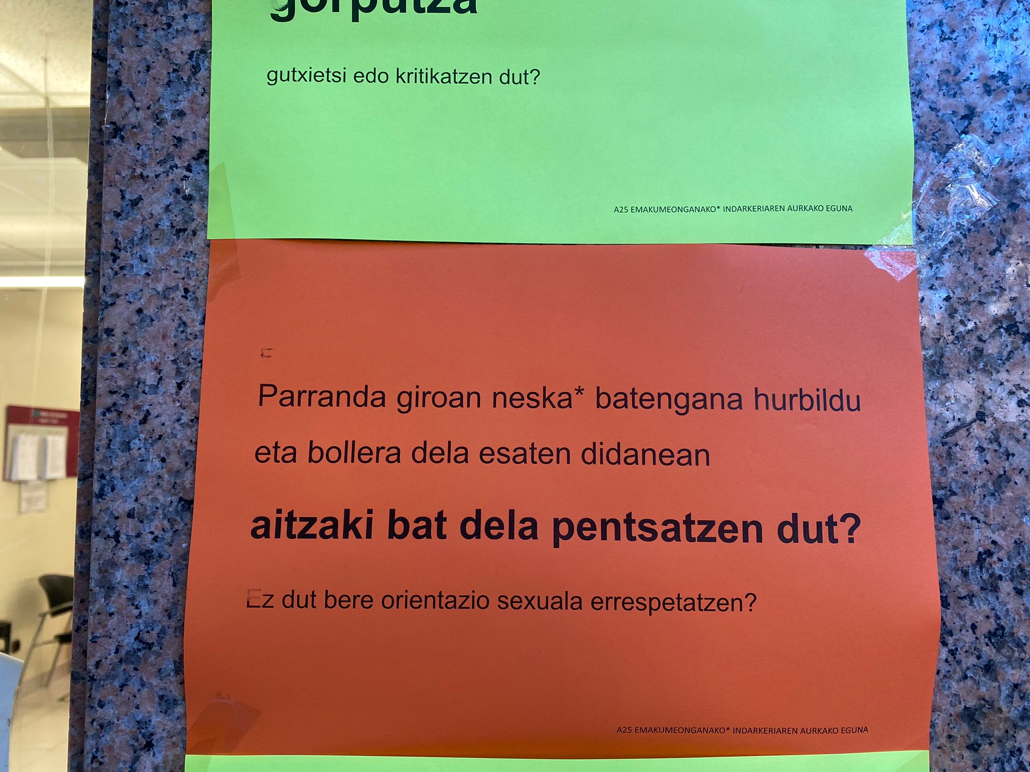 Indarkeria matxistaren gainean gogoeta egiteko mezuak Antxoko bazter guztietan topa daitezke gaur. Hona hemen kultur etxeko argazki bat. Azaroaren 25aren atarian gauden honetan -Indarkeria Matxistaren Kontrako Nazioarteko Eguna da hori-, hausnarketarako kanpaina anonimoa abiarazi dute Pasai Antxon.
