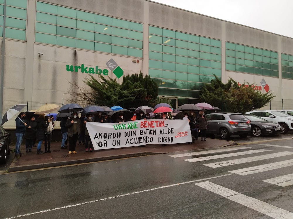 Urkabe Benetan enpresako langileen protesta atzo. Borrokan ari dira Okin taldeko Urkabe Benetan enpresako langileak, lan baldintza duinen alde. Masti-Loidi industriagunean dago. Aste honetan bertan lanuzteak egin dituzte enpresan, atzo eta gaur, eta datorren astean ere aurreikusia dute protestekin jarraitzea bizi duten egoeran aldaketarik ez bada ematen. Horren arabera, astelehen, astearte eta asteazkenean lau ordutako lanuzteak egingo dituzte enpresaren aurrean, eta ostegun eta ostiralean, berriz, grebara deitu dute.