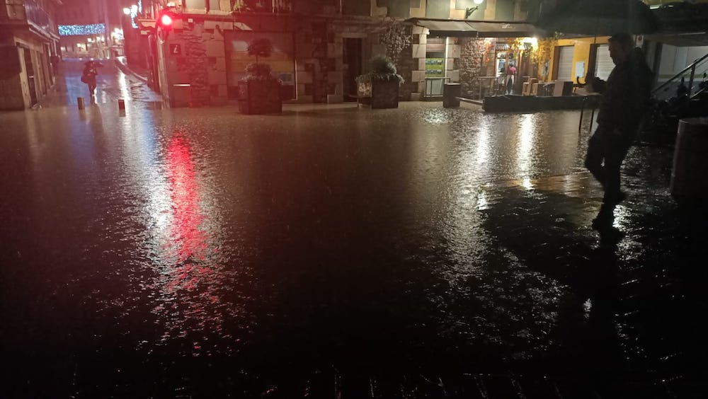 - Madalen kalea, Foru Plaza inguruan urez gainezka atzo arratsean.