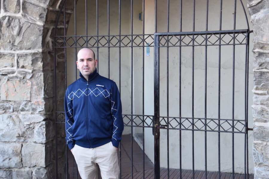 Alfredo Sanjuanena da 2022rako Lezoko Udalak egin duen egutegiaren azal nagusiko argazkia. Kale Nagusiko iturria du irudiak erdi-erdian, arrain begiko objektibo batekin jasota.