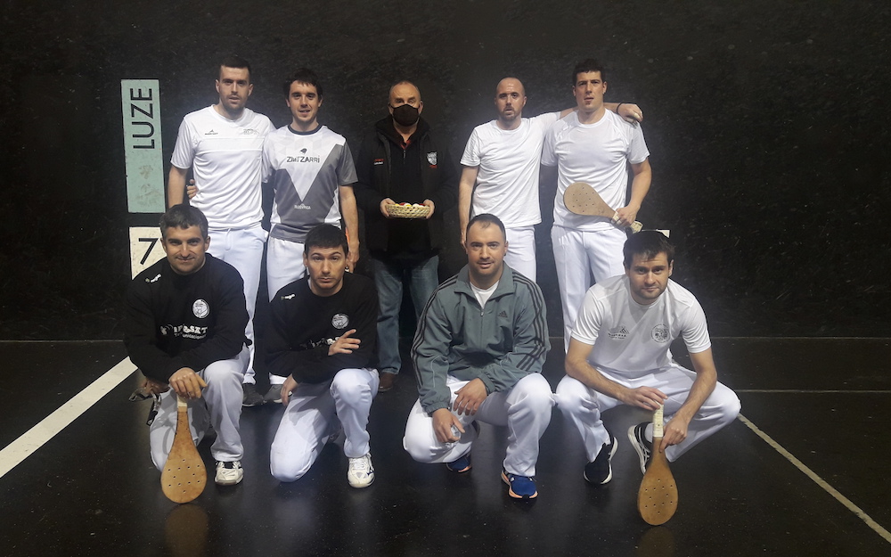 Zutik Larretxea, Ibarburu, Toledo epailea, Markos eta Bereziartua. Makurtuta, Aizkorreta, Izkierdo, Arizmendi eta Arbelaitz. Giriziak antolatzen duen Euskal Herriko Pala Txapelketa Irekian zortzi partida jokatu dituzte pasa den asteburuan. Horietako bitan aritu dira oiartzuarrak, emaitza onarekin.