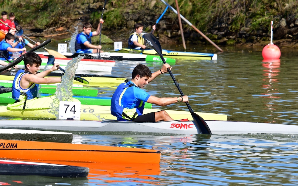 Hasieratik buruan, Gaizka Lopez (74). Goialdean, Gorka Bravo (75), Iraitz Izagirre eta Asier Bulman taldekideak. Iragan igandean eman zioten hasiera Irunen udaberriko Gipuzkoako Eskola Kirolaren baitako piraguismo lehiari. Lurraldeko klubetatik etorritako kirolariez gain, Nafarroako eta Bizkaiko hainbat ere bertaratu ziren, proba irekia baitzen. Bertan izan zen, ezbairik gabe, Pasaia Kayaken harrobi gaztea.