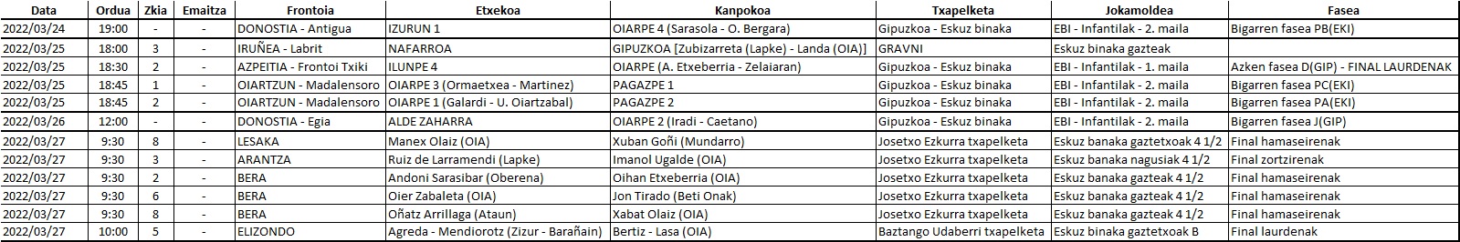 Oiarperen asteburuko pilota partidak (2022-03-25)