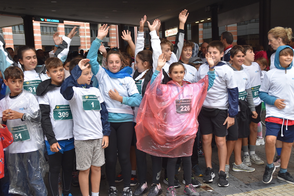 Egun euritsuari aurre egin, eta Egiluzeren familia lasterketan parte hartu dute dozenaka herritarrek.
