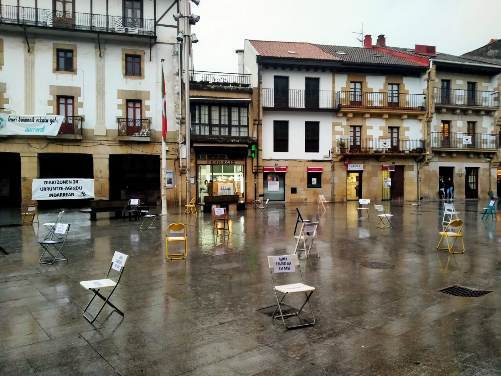 24 eserleku jarri dituzte plazan, erasotzaileak irudikatzeko. Datorren ostiralean azaroaren 25a da, indarkeria matxistaren kontrako eguna. Horren harira, Oiartzungo mugimendu feministak hainbat ekitaldi eta ekintza antolatu ditu. Aurtengo leloa Ez gara zuen kaioletan biziko. Saretuz garaitezinak gara izango da.