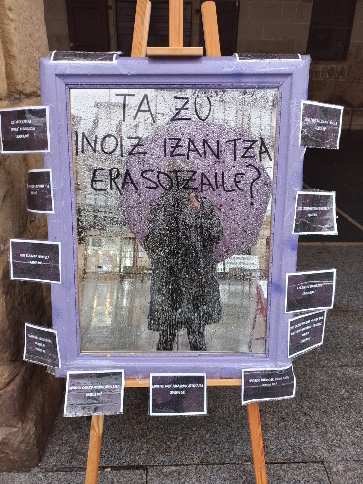 Horrez gain, Hatzamarkakoek ispilu bat jarri zuten atzo, Eta zu inoiz izan zara erasotzaile? galdera idatzita duena. Inguruan kartel batzuk ditu, emakumeek egunerokotasunean jasaten dituzten erasoak jasotzen dituena. “Horiek onartuta edo erreakziorik gabe uzten badira, konplize gara”, azaldu dute mugimendu feministako kideek.