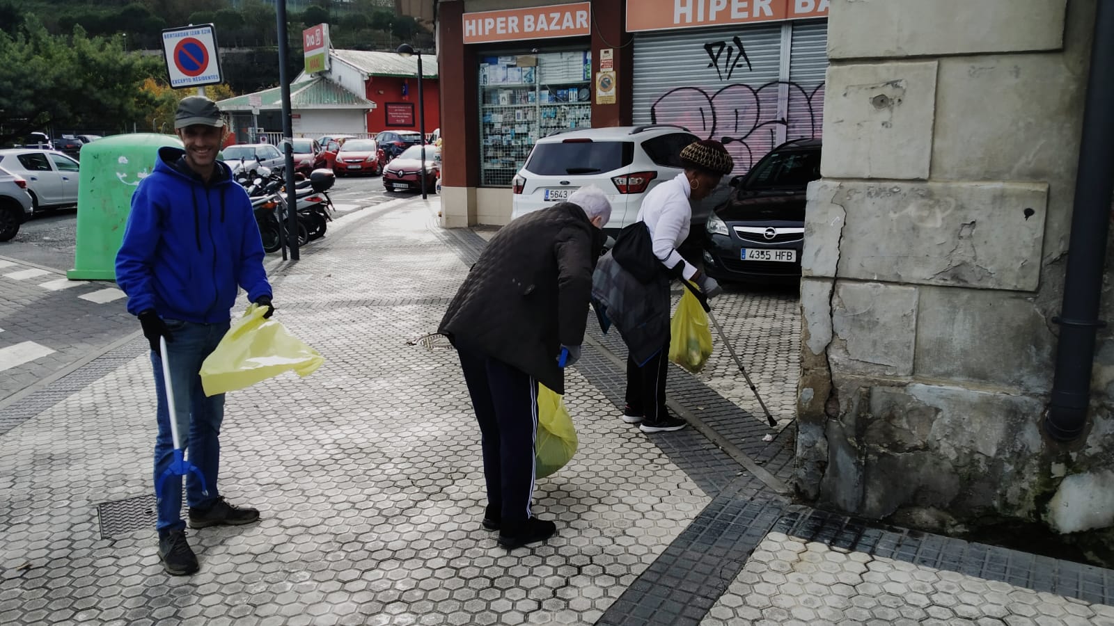 Zenbait antxotarrek bat egin zuten atzo goizean, euren ekimenez, barrutiko kaleetako hondakin eta zaborra garbitzeko.