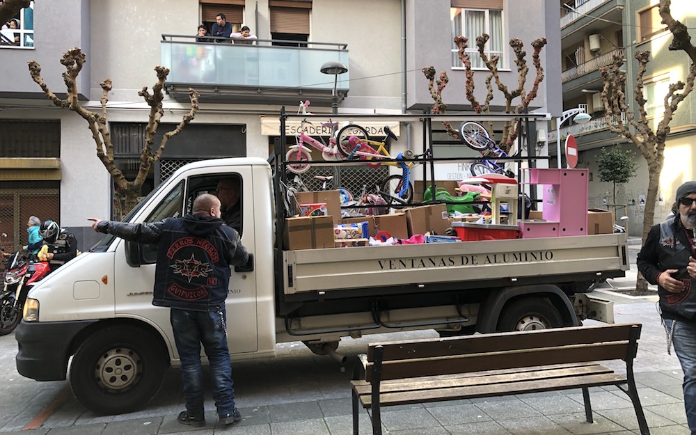 Kamioi bete jostailu gerturatu dira Perros Negros elkarteko kideak Bekoz Beko elkartearen egoitzara, "inor jostailurik gabe gera ez dadin".