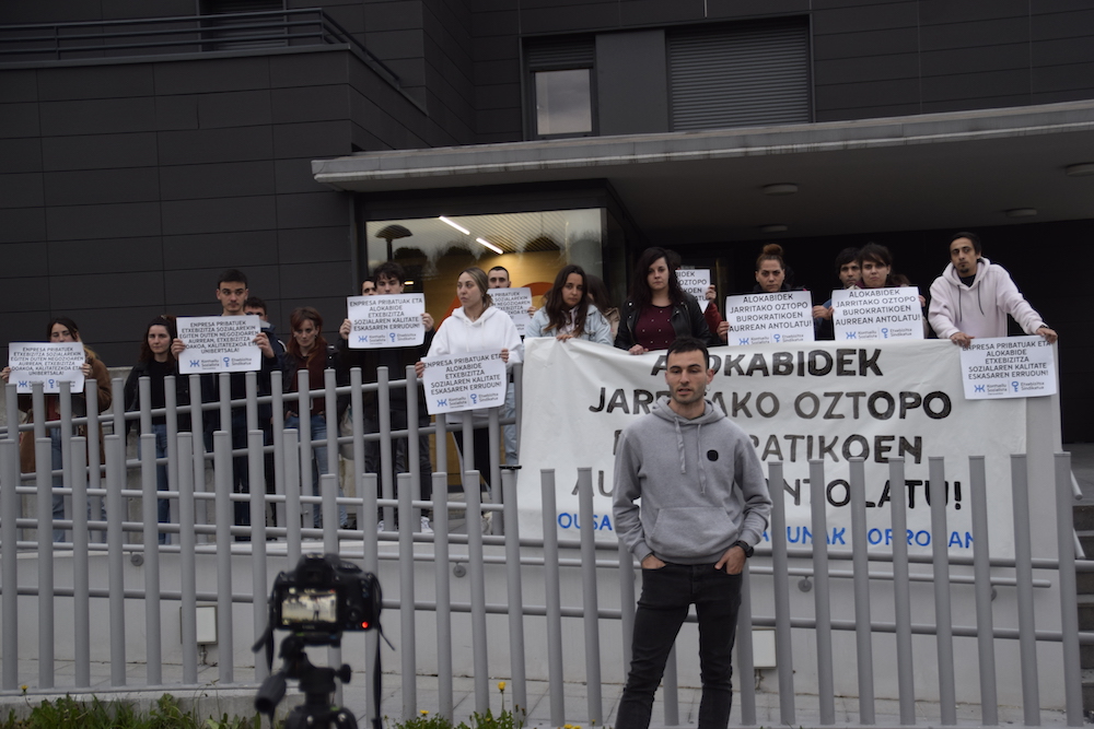 Atzo bizilagunek eta Oarsoaldeko Etxebizitza Sindikatuak egindako agerraldia. Lousada kaleko 40 zenbakian dauden alokairu sozialeko etxebizitza eraikineko bizilagunek eta Oarsoaldeko Etxebizitza Sindikatuak agerraldia egin zuten atzo. Salaketa agerraldia izan zen atzokoa, haserrea adierazteko. Ekonomikoki “egoera zaurgarrian” dauden pertsonei bideratutako etxebizitzak direla nabarmendu zuten bildutakoek, eta “kalitate txarrekoak” izateaz gainera, “komunitate tasa zein zerbitzu altuak” ordaintzera derrigortzen dituztela salatu zuten. Alokabide eta enpresa pribatuak etxebizitza sozialen kalitate eskasaren errudun leloa zuten kartelak eskutan egin zuten agerraldia