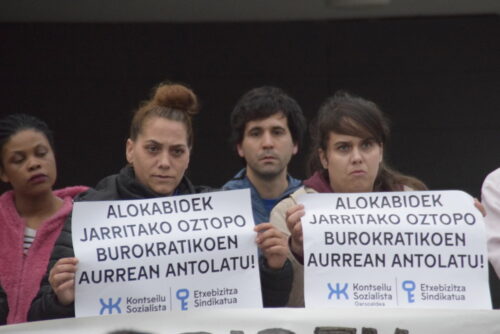 Egoera konpontzeko “antolaketaren” alde egin dutela azaldu zuten bildutakoek amaitzeko, eta horren harira negoziazio mahai baten esertzera deitu dituzte Alokabide eta Stechome, “irtenbideak kolektiboa behar baitu”.