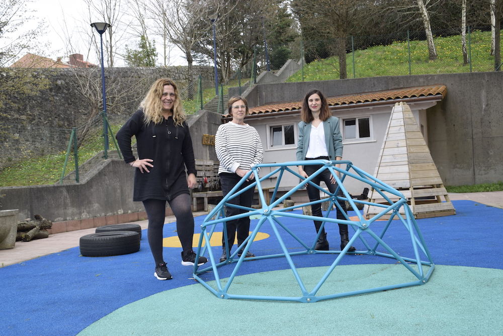 Maider Sanchez Goialde Haur Eskolako koordinatzailea, Olatz Korta Uztargiko koordinatzailea eta Itziar Ostolaza Hezkuntza zinegotzia aurkezpenean. Urtero matrikulazio garaian egiten duten moduan, aurten ere, ate irekien jardunaldia egingo dute Uztargi eta Goizalde haur eskola publikoetan. Matrikulazio epea, apirilaren tik maiatzaren 9ra izango da zabalik, eta ate irekiak, berriz, asteazkenean (hilak 29) egingo dituzte. Helburua instalazioak eta bertako hezitzaile eta langileak ezagutzeko aukera ematea familiei.