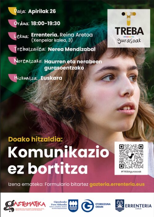 Argazkia: Nerea Mendizabal Gipuzkoako Foru Aldundiko Gazteria Zuzendaritzak martxan duen prestakuntza eskaintzaren baitan, guraso eta seme-alaben arteko komunikazioa jorratzeko dabiltza lanean. Hala, datorren apirilaren 26an (asteazkena) Nerea Mendizabalek “komunikazio ez bortitzaren” inguruko solasaldia eskainiko du, haur eta nerabeen gurasoei zuzendua. Hitzaldia Reina Aretoan izango da, arratsaldeko 18:00etatik aurrera, eta gurasoek hainbat tresna eta baliabide eskuratzea izango du helburu.