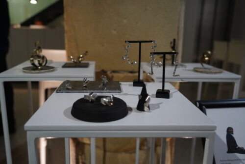 Ainhoa Ibargurenek bitxi bilduma bat aurkeztu du eta azpimarra jarri du bitxiak egitearen artisautza lanean. Bere sortze prozesuaz aritu da hitz egiten eta pieza handiak egitera ohituta dagoela aipatu du, baita ere gaur aurkeztu dituen piezak arkitekturan eta forma kurbatuetan oinarritutakoak direla. “Aph markako bitxi eta eskulturen helburua dotorezia eta berezitasuna bateratzea da, bitxi esklusiboak sortuz”.