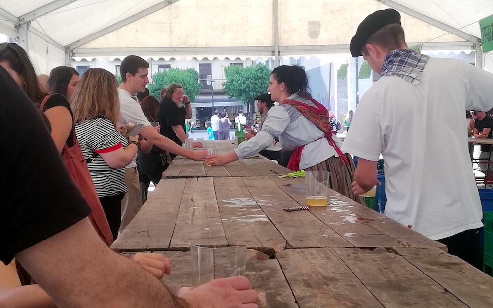 Antxoko nahiz ondoko herrietako aurpegiak ikus zitezkeen larunbatean hamar sagardotegien ekoizpen dastatzen. 18:00etan atera zieten kortxoa lehen botilei, eta ordutik edalontziak betetzeari ez zioten utzi zerbitzariek.