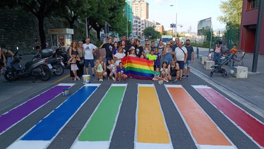 Trintxerpeko eragileek eta LGTBIQ+ mugimenduko kideek margotu dute, auzolanean. Gainontzeko barrutietan ere ekintza berbera errepikatuko dute aurki.