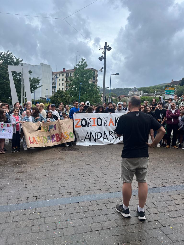 “Ez dakigu nola prestatu ahal izan duzuen hau guk ezer jakin gabe”, aitortu zuen omenaldian lur hartzean Iñaki Tolaretxipi zuzendariak, nabarmen hunkituta. Agurra dantzatu eta bertsoak abestu zizkieten artistei aitortza moduan, plaza bete txalo.