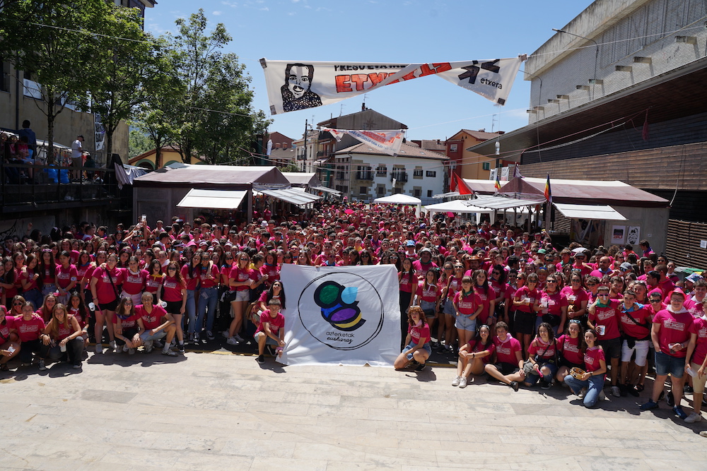 Gazte Eguna dute gaur Oiartzunen eta gazte andanak erantzun dio deiari. Biyurrieneak karrikak arrosez koloreztatzea lortu du, 930 pertsona elkartu baitira Kontzejupean egiten ari diren gazte bazkarian. Alta, beltzez jantzita, Alba Lozanoren Utländsk film laburra grabatzen aritu dira saltsaren erdian.